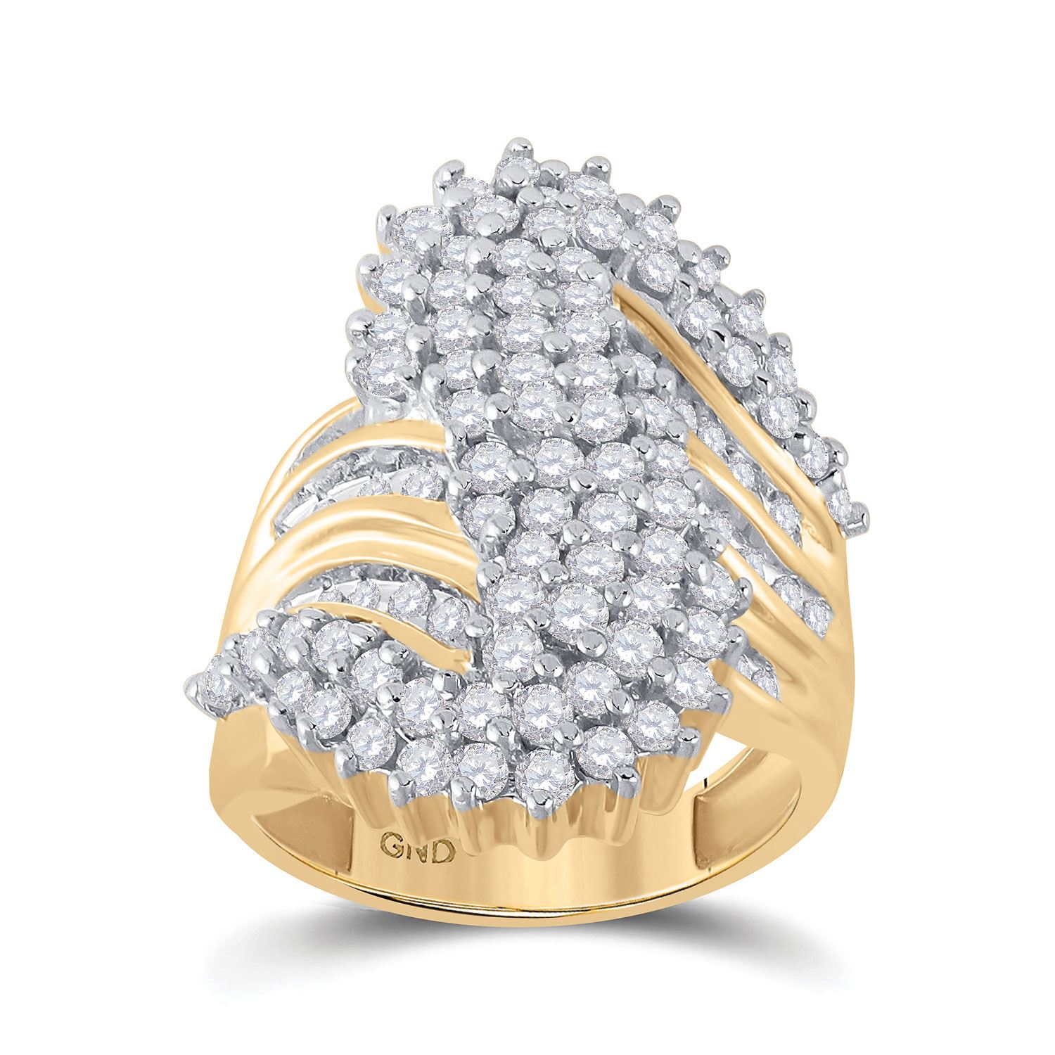 REF-100H3R - 2 CTW Womens Round Diamond Cluster Ring 10kt Yellow Gold - REF-100H3R
