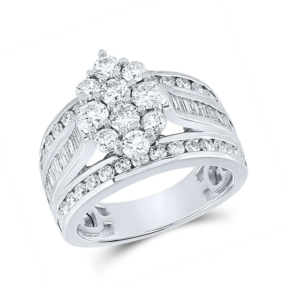 REF-184A3M - 2 CTW Womens Round Diamond Right Hand Cluster Ring 14kt White Gold - REF-184A3M