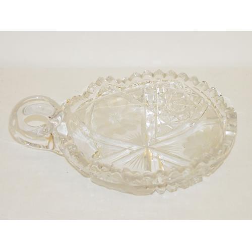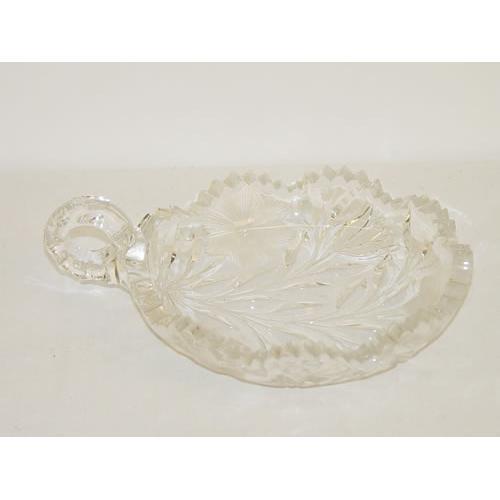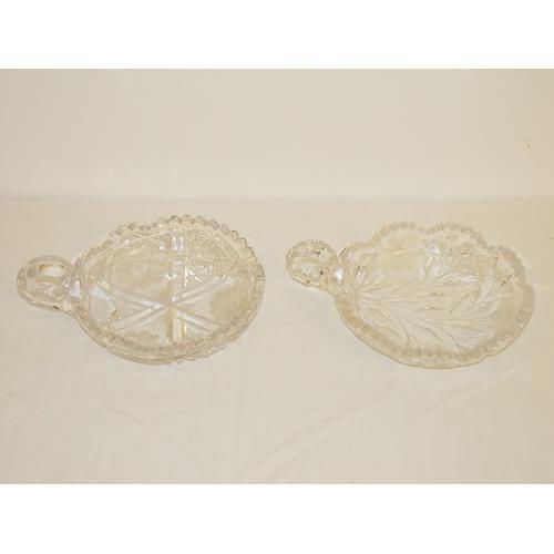 (2) CUT GLASS HANDLED NAPPIES: (1) 6" & (1) 5 3/4"- BOTH UNSIGNED - SMALL RIM CHIPS & WEAR