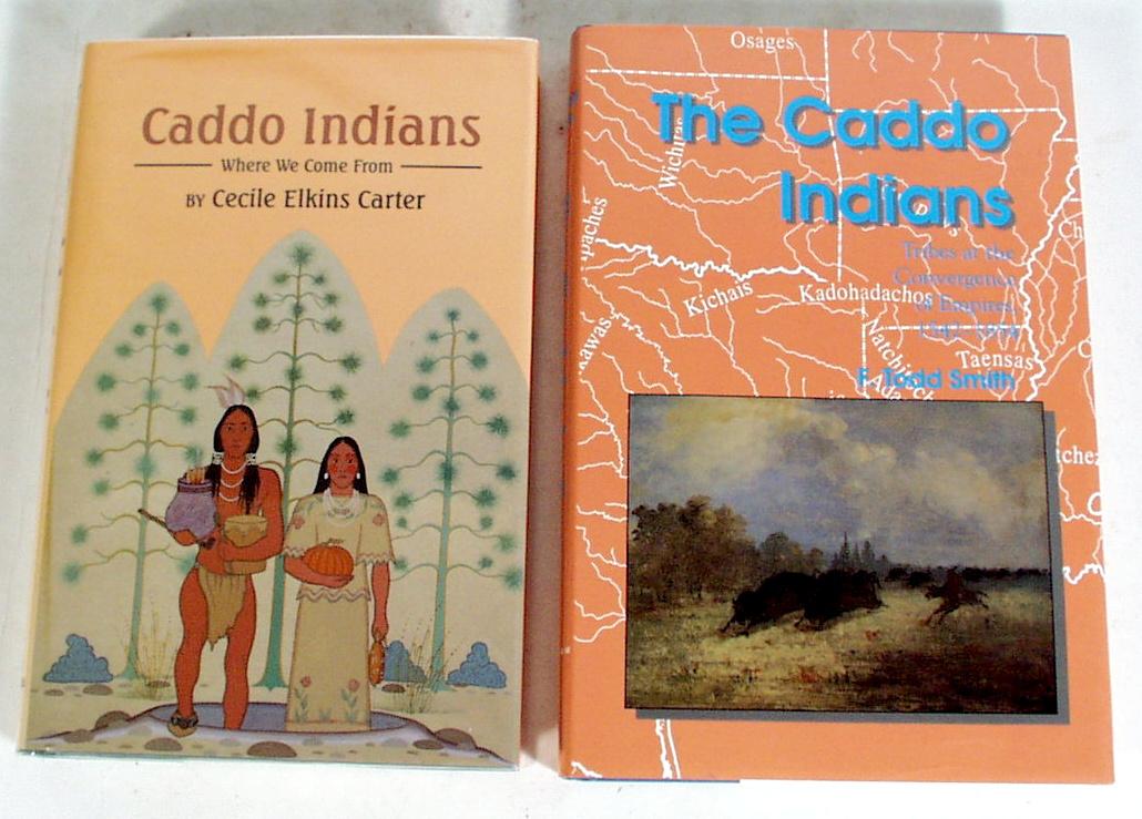 1) Caddo Indians; Where we come from by Cecile Elkins Carter. Hardcover. 420 pages. Excellenet condition. 1995. 5-1/2" x 8-1/2". This narrative history of the Caddo Indians creates a vivid picture of daily life in the Caddo Nation. Using archaeological data, oral histories, and descriptions by explorers and settlers, Cecile Carter introduces impressive Caddo leaders past and present. The book provides observations, stories, and vignettes on twentieth-century Caddos and invites the reader to recognize the strengths, rooted in ancient culture, that have enabled the Caddos to survive epidemics, enemy attacks, and displacement from their original homelands in Louisiana, Arkansas, Texas, and Oklahoma. 2) The Caddo Indians; Tribes at the Convergence of Empires 1542-1854 by F. Todd Smith. Hardcover. 228 pages. Excellent condition. 6" x 9".