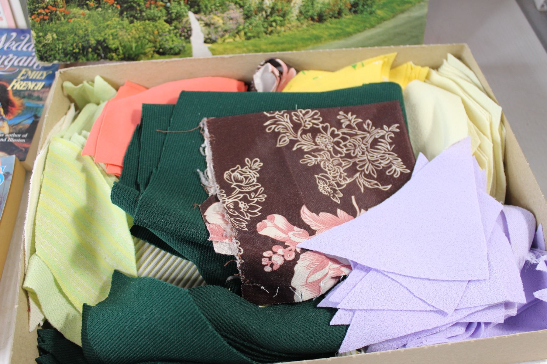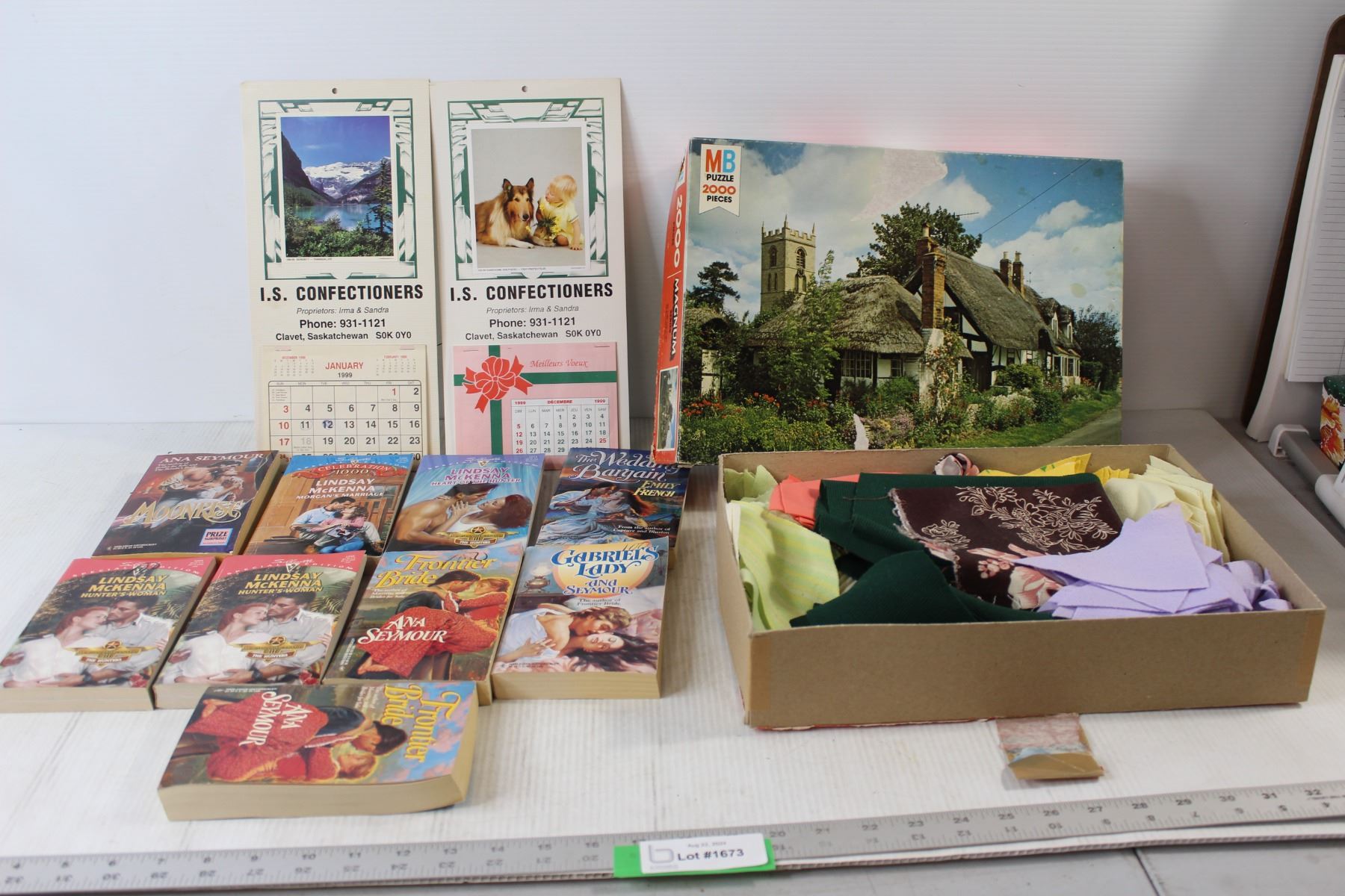 (2) Calendars, Assorted Pieces Of Cloth, (9) Romance Books