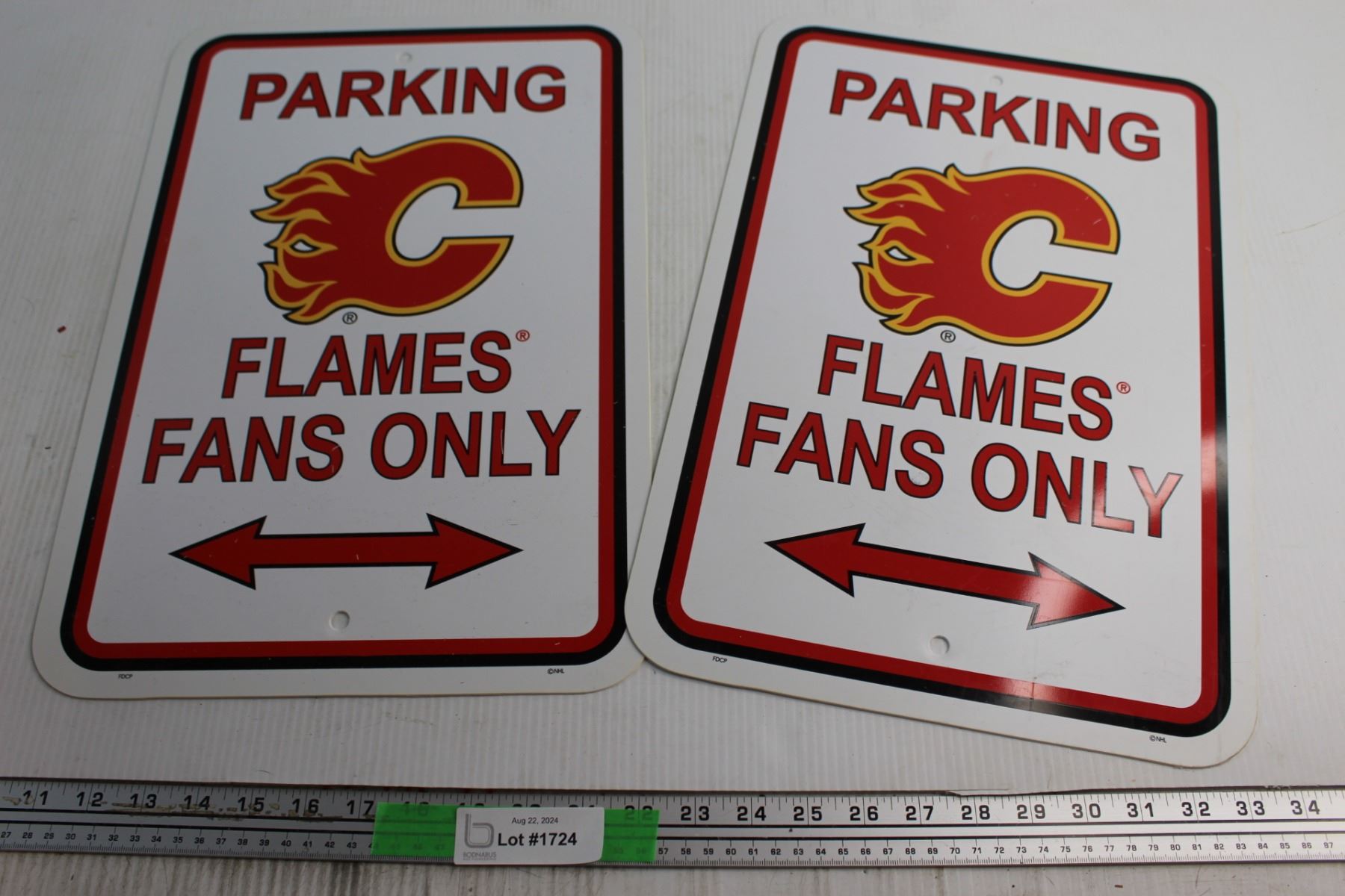 (2) Calgary Flames Parking Signs 18'' x 12'