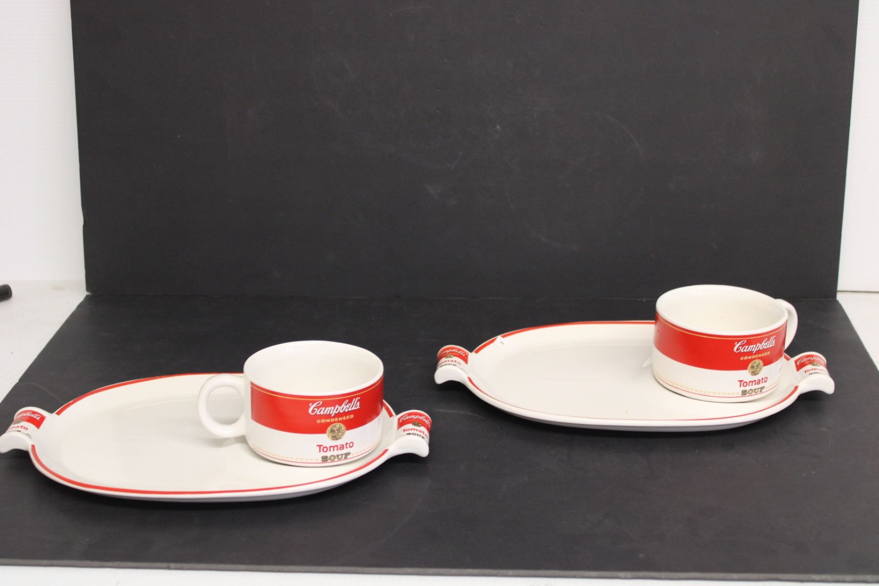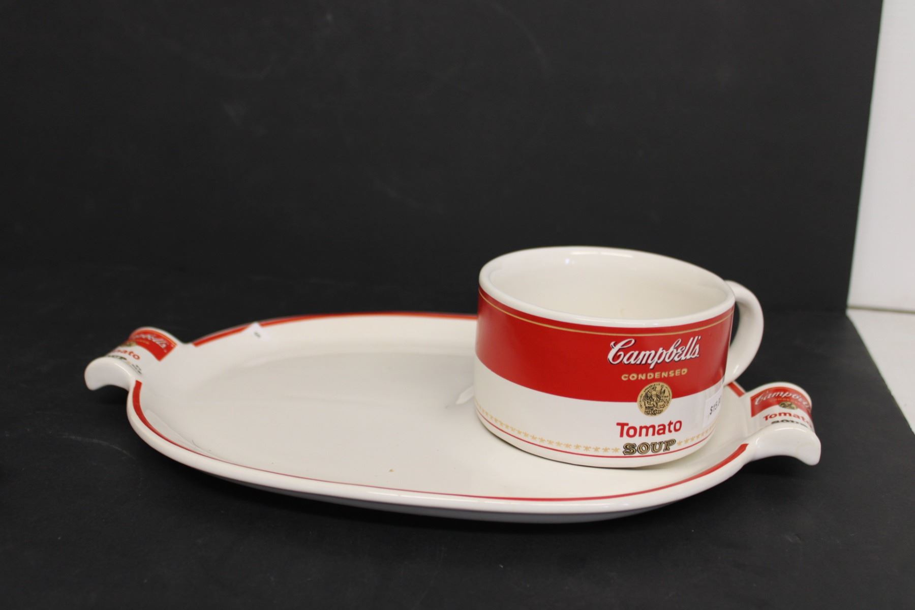 (2) Campbell's Serving Trays and (2) Campbell Soup Mugs