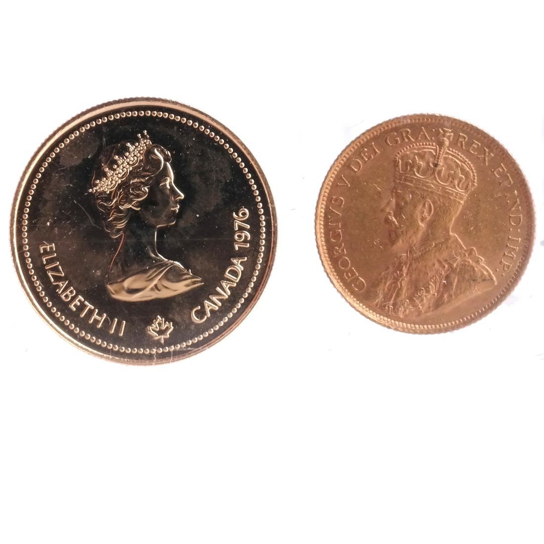 2 Canada gold coins: $5 - 1912; $100 - 1976.