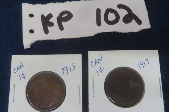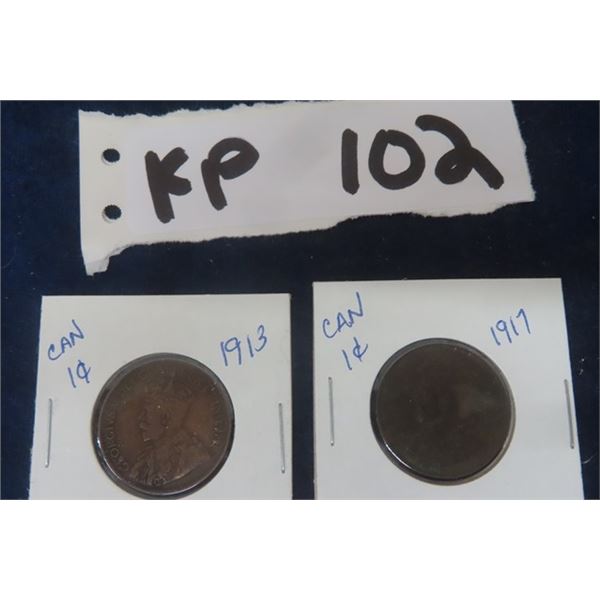 2 Canadian 1 Cent Coins 1917 + 1913