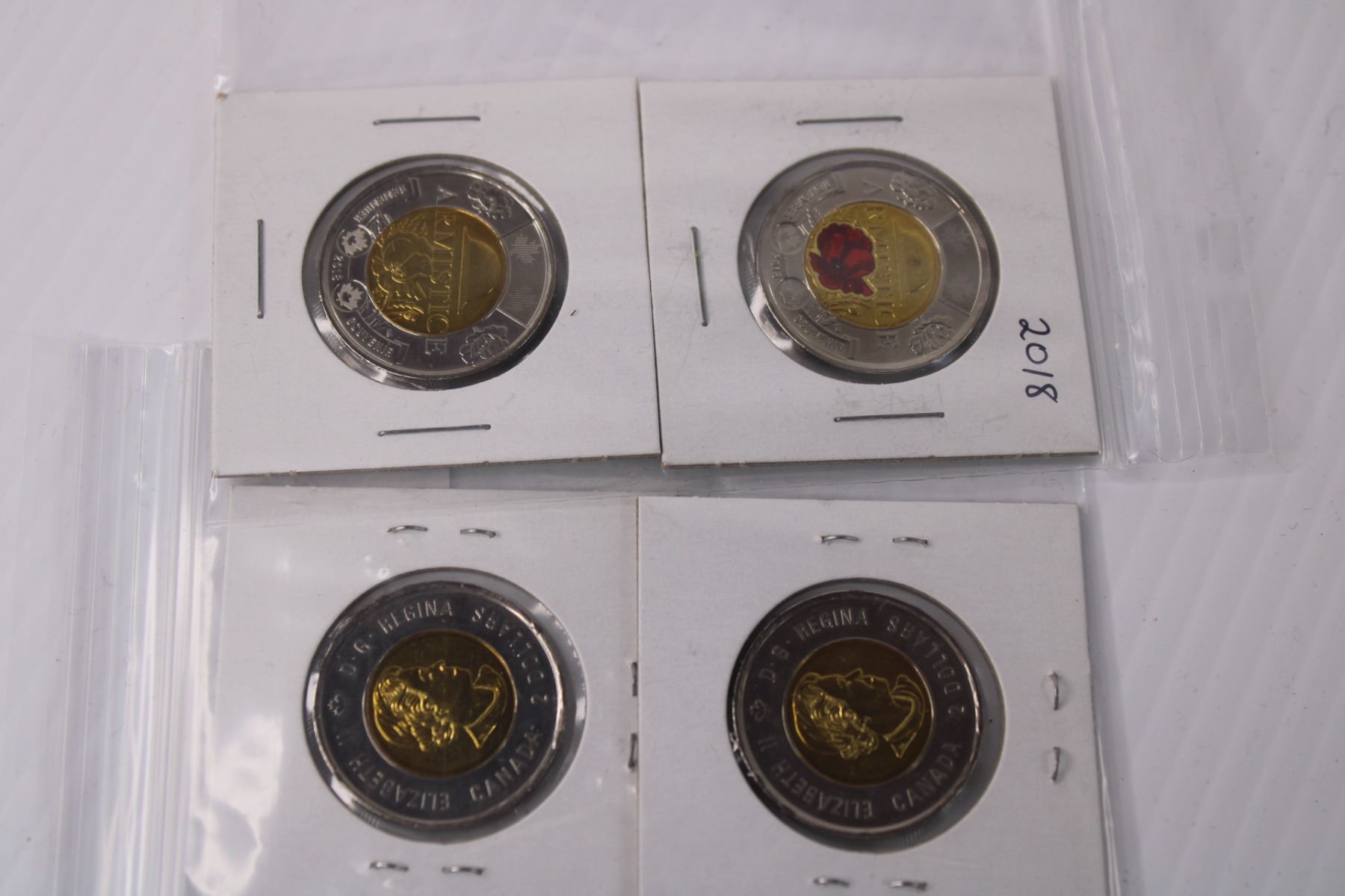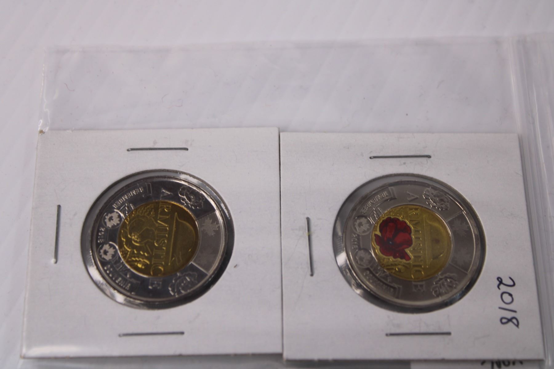 (2) Canadian 2018 Toonie Armistice Coin Set - Colored/Non Colored