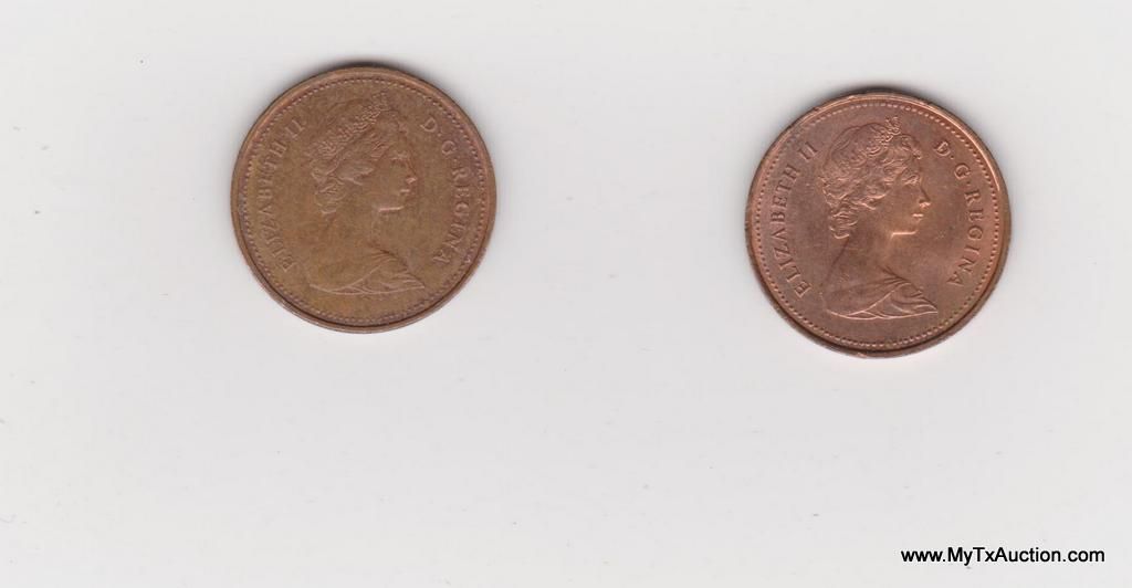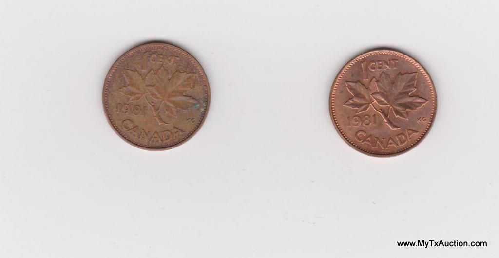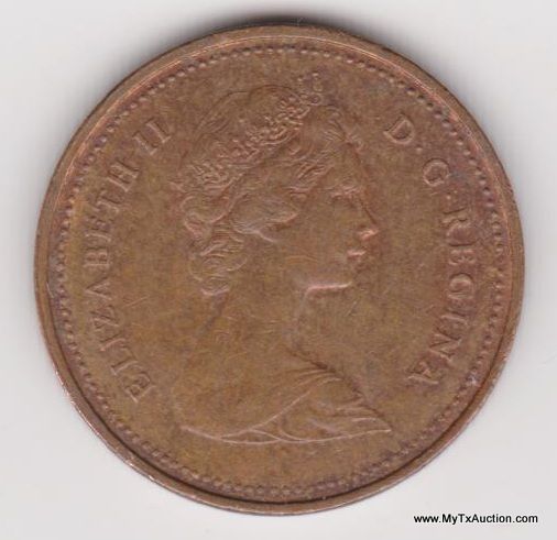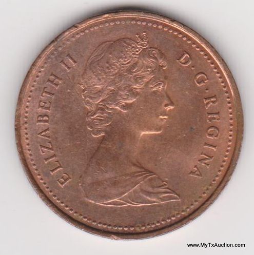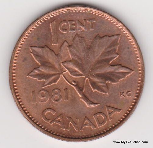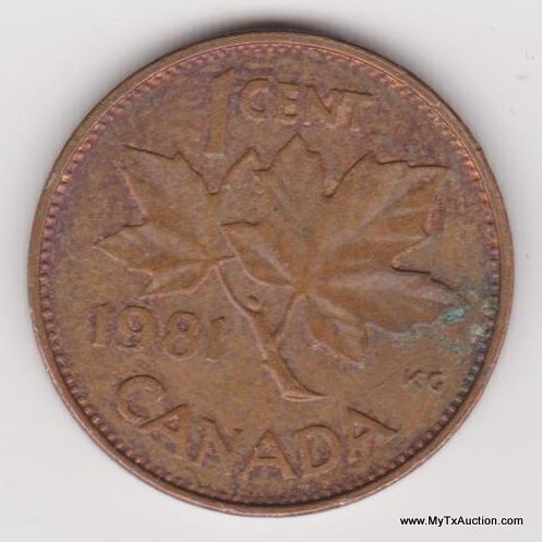 2-1981 1 Cent - Elizabeth II (2nd portrait; round, light type) Country:Canada - Coin Mint Years:1980-1981 - Metal:Bronze - Weight:2.8g - Diameter:19mm - Thickness:1.45mm - Design Obverse:The portrait in right profile of Elizabeth II, when she was 39 years old, is surrounded with the inscription "ELIZABETH II D • G • REGINA" (Elizabeth II, Queen by the grace of God) Lettering: ELIZABETH II D·G·REGINA - Reverse:A maple leaf twig is surrounded with the facial value ans the inscription "CANADA" Lettering:1 CENT 1981 CANADA - Engravers:Arnold Machin (obverse) George Edward Kruger Gray (reverse) - Shape:Round - Edge:Smooth