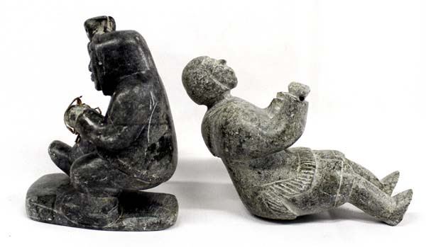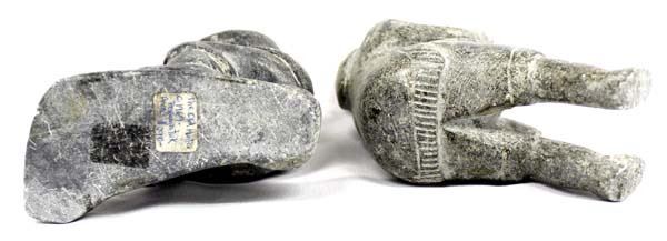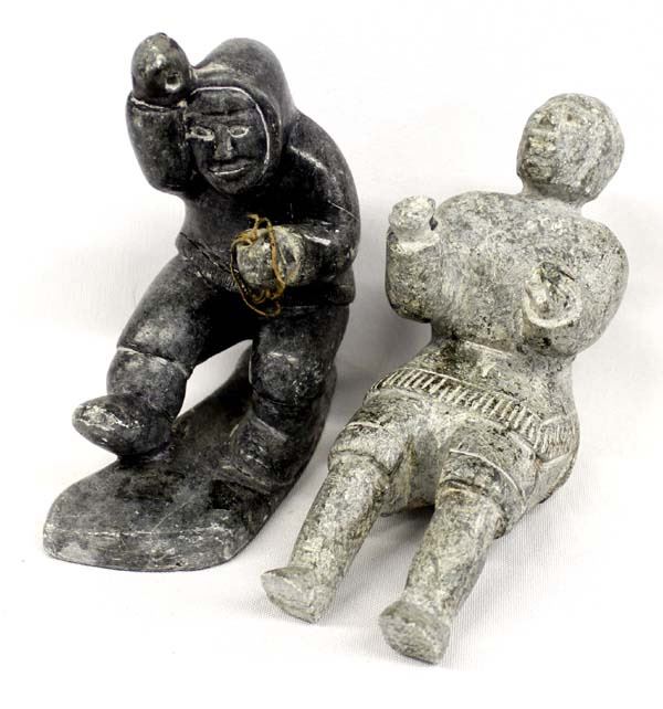2 Native American Canadian Inuit Stone Carvings, includes #1 Old Hunter, measures 5.5'' x 2'' x 4'' #2 Standing Man (which by the way, doesn't stand very well) measures 6.5''H x 2.5''W x 3.75''Deep