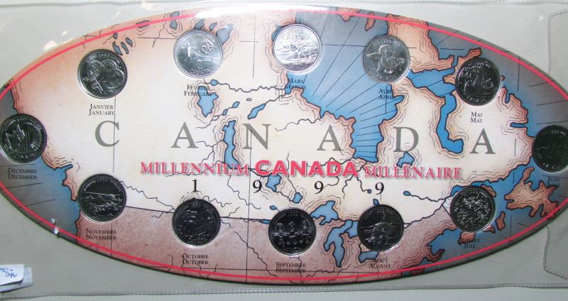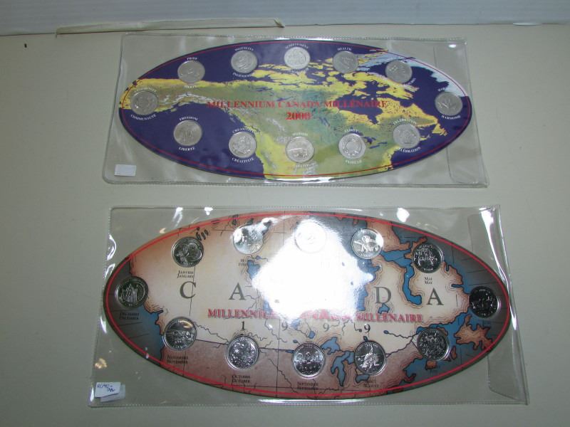 2 Canadian Millennium Quarter Collection On Original Collector Cards - 1999 & 2000 - 24 Coins In Total
