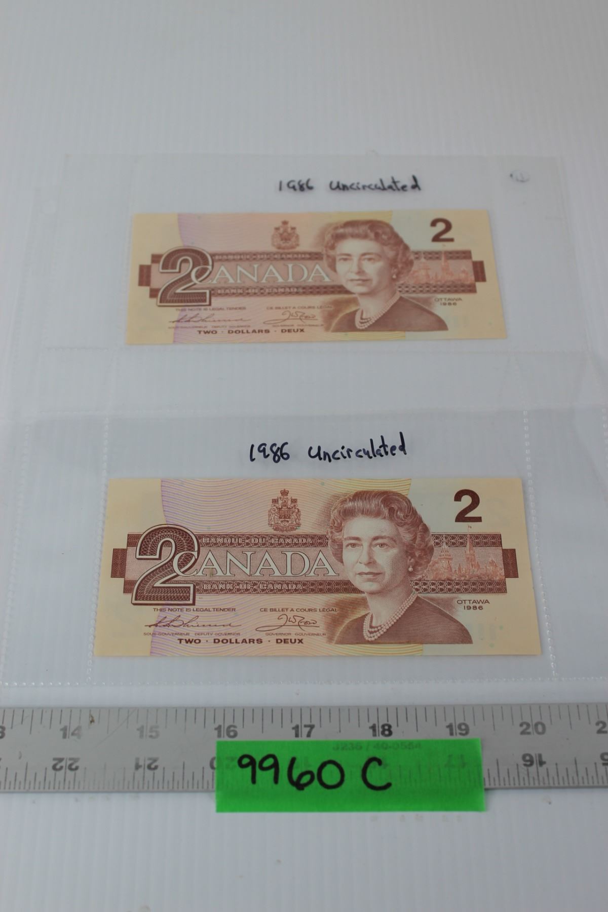 (2) Canadian Two Dollar Bill 1986 - Uncirculated