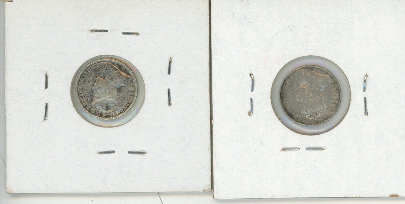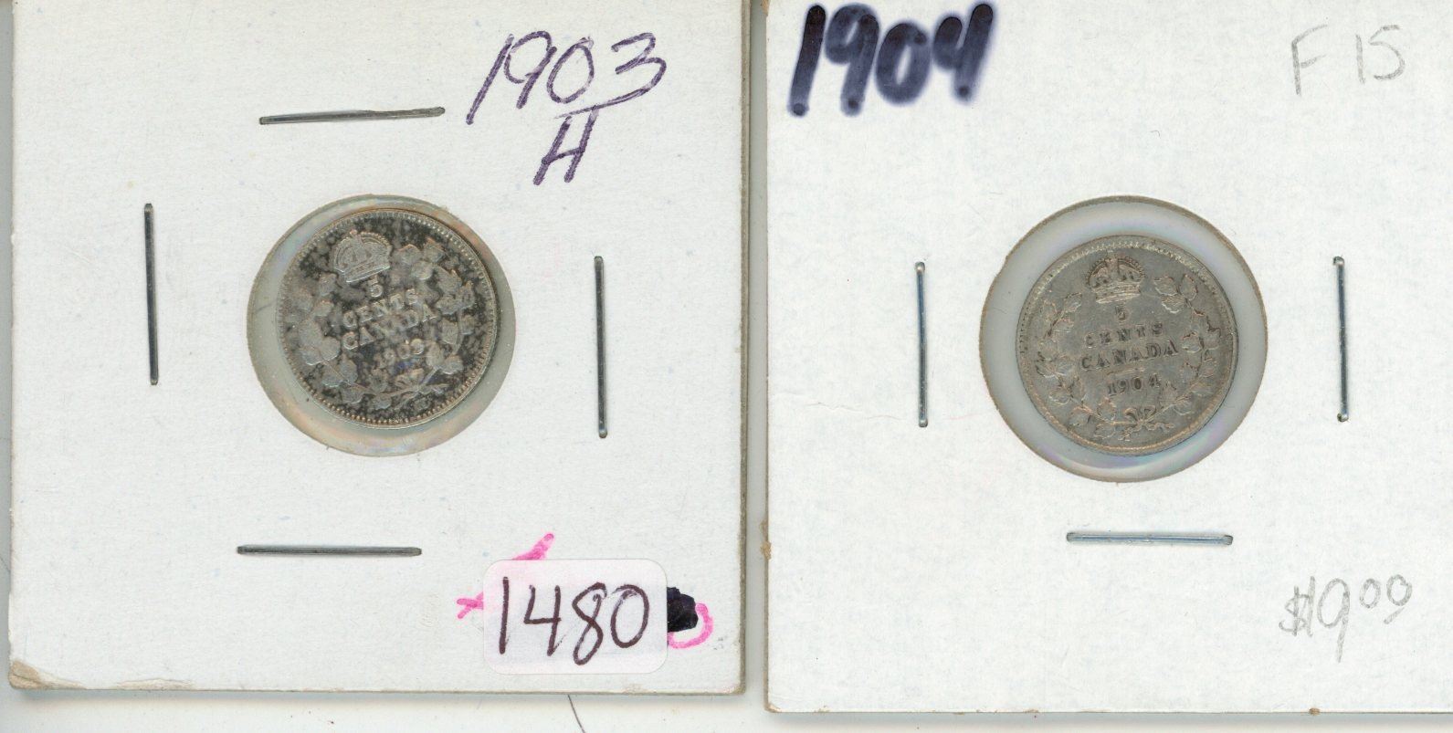 2 Canadian silver 5 cent coins - 1903 & 1904