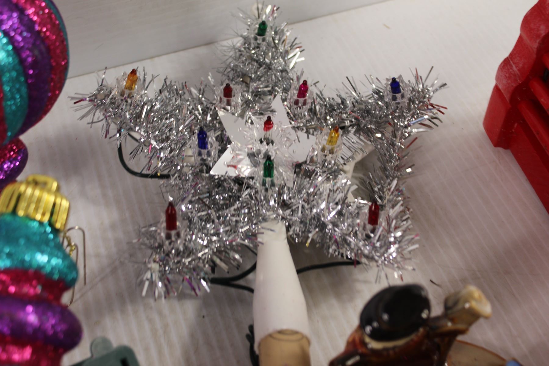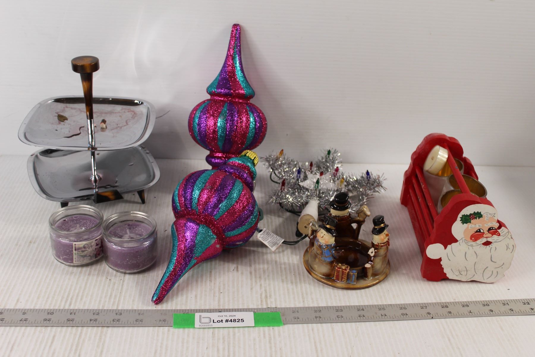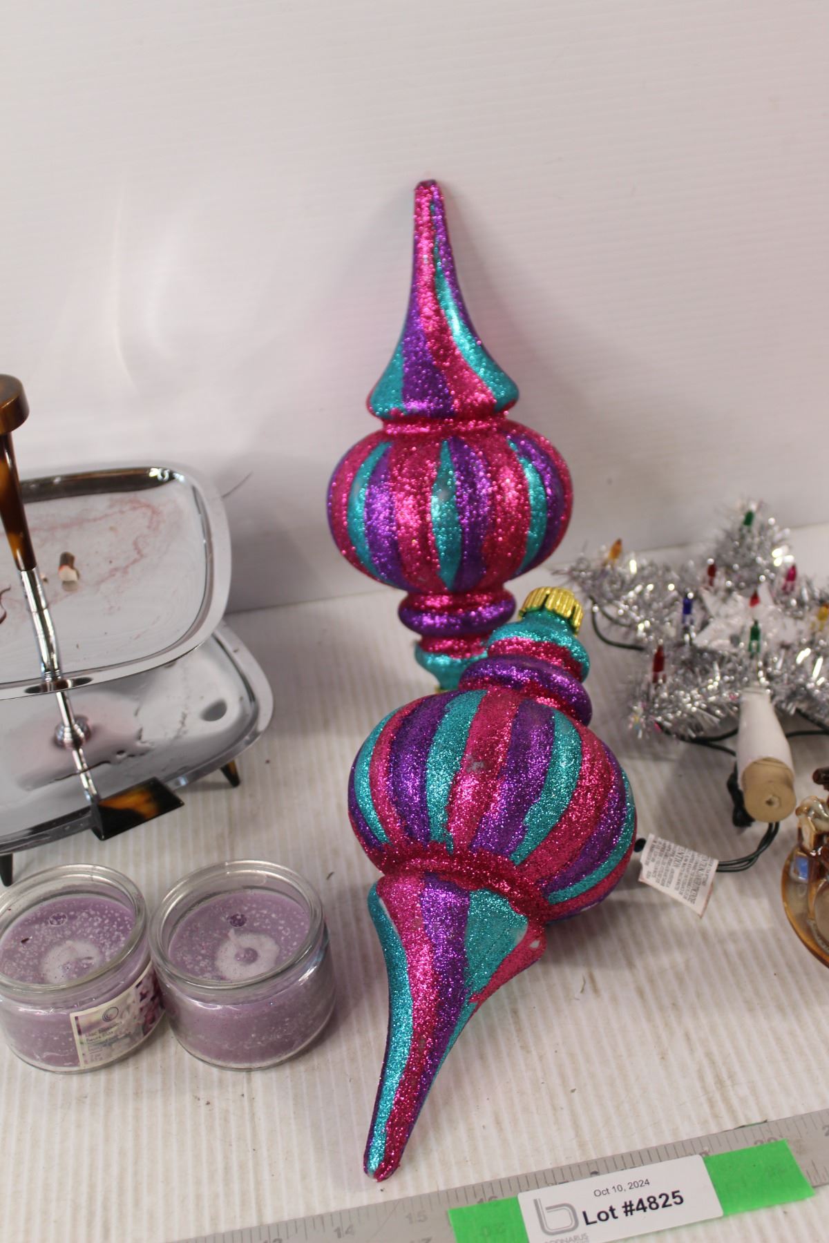 (2) Candles, Christmas Star, Assorted Christmas Decorations