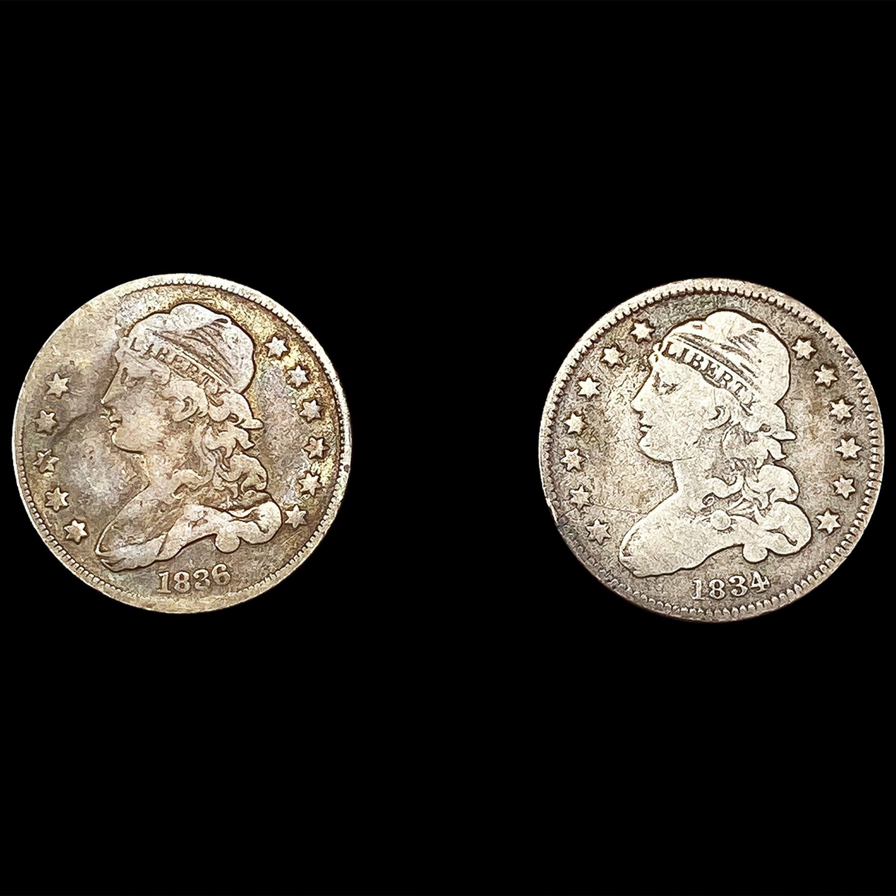 (2) Capped Bust Quarters (1834, 1836) NICELY CIRC