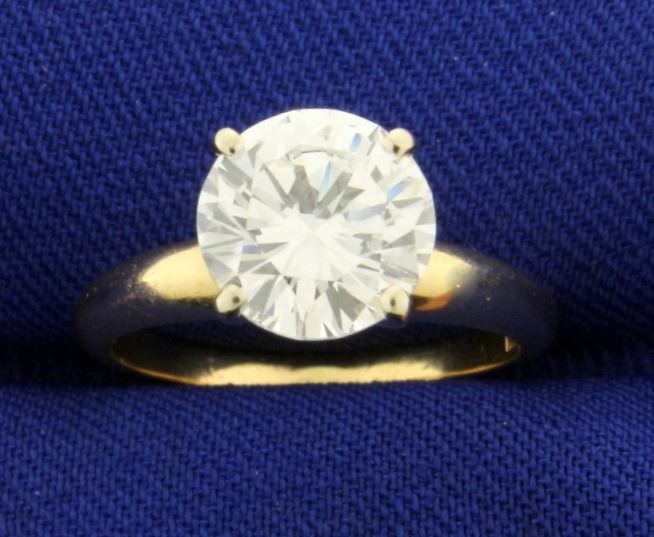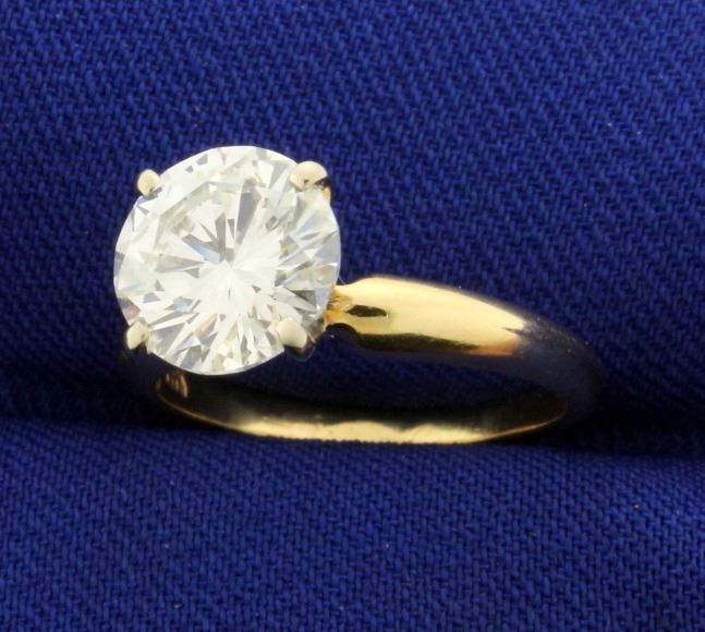 In 14k yellow gold. Diamond is in 4-prong solitaire mounting. Diamond is a high quality round brilliant cut, H color, SI clarity, excellent cut with lot of sparkle and brilliance. Size 4 1/8. 2.8g