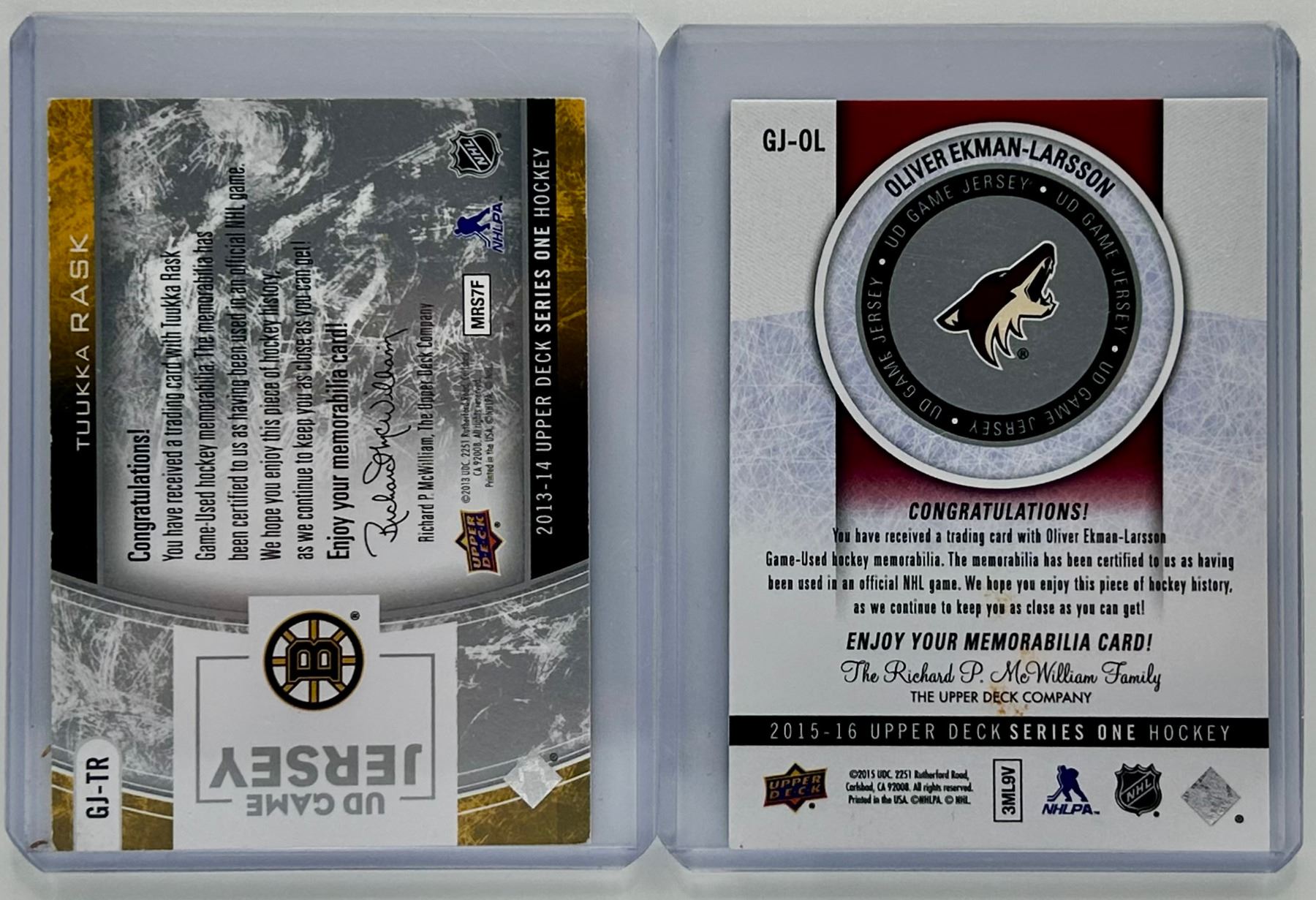 2015 Upper Deck Game Jersey Oliver Ekman-Larsson #GJ-OL
