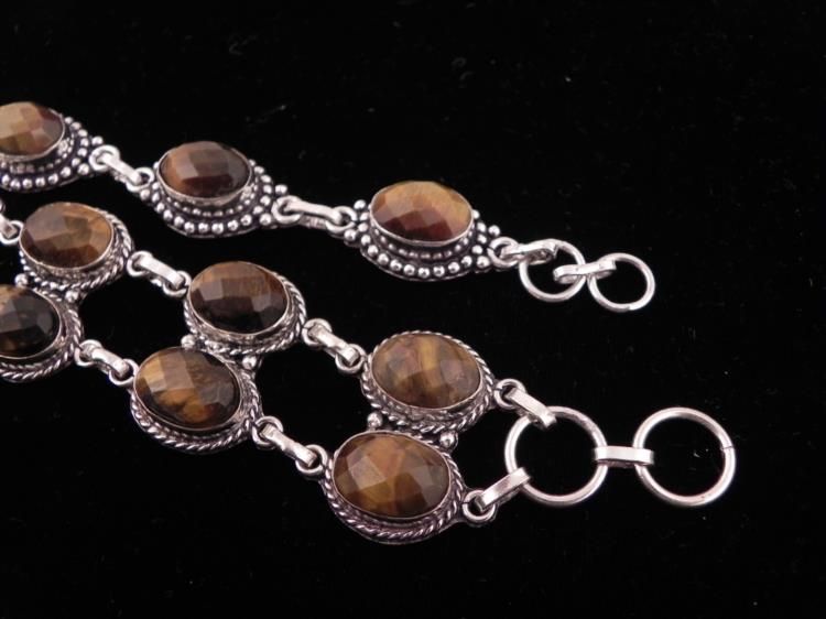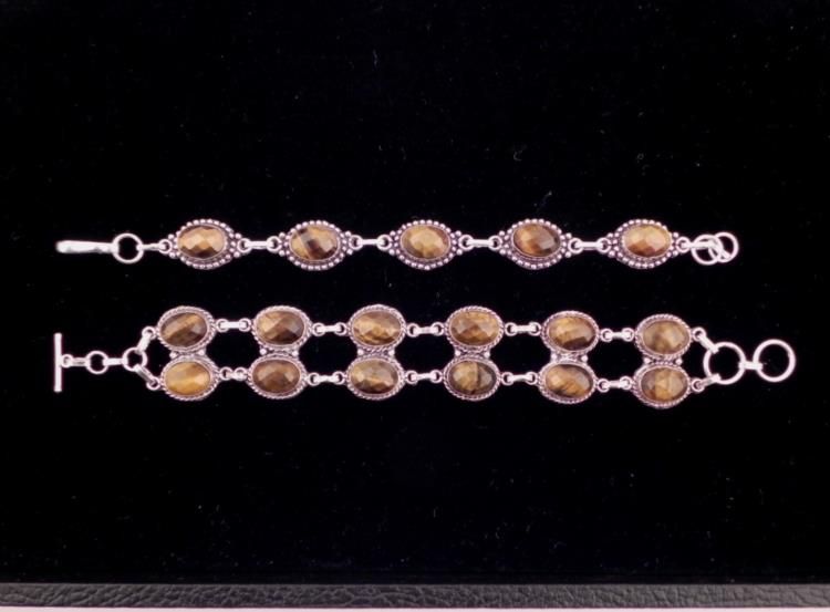 2 different BraceletsGemstones: Carnelian Cut: Oval, facetedSingle strand: Six 14 mm stones on beaded sterling settingsDouble strand: Twelve 14 mm stones on rope style sterling settingsSize: Should fit a wrist about 7" aroundCondition: Excellent