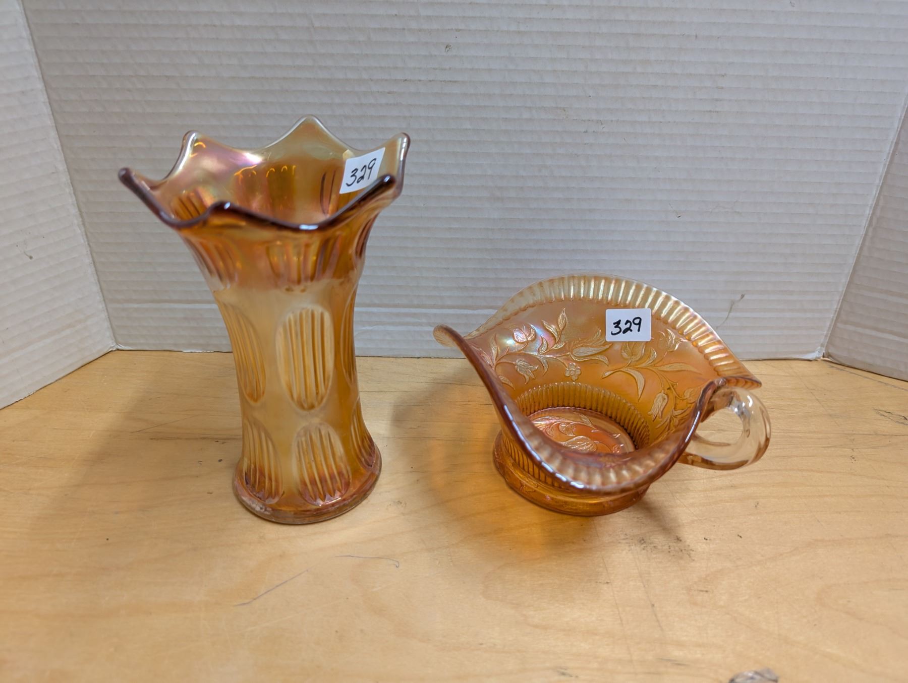 (2) Carnival Glass Vase and Bowl