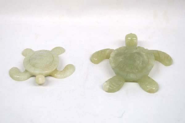 2 Carved Jade Sea Turtles, largest measures 4'' x 4''