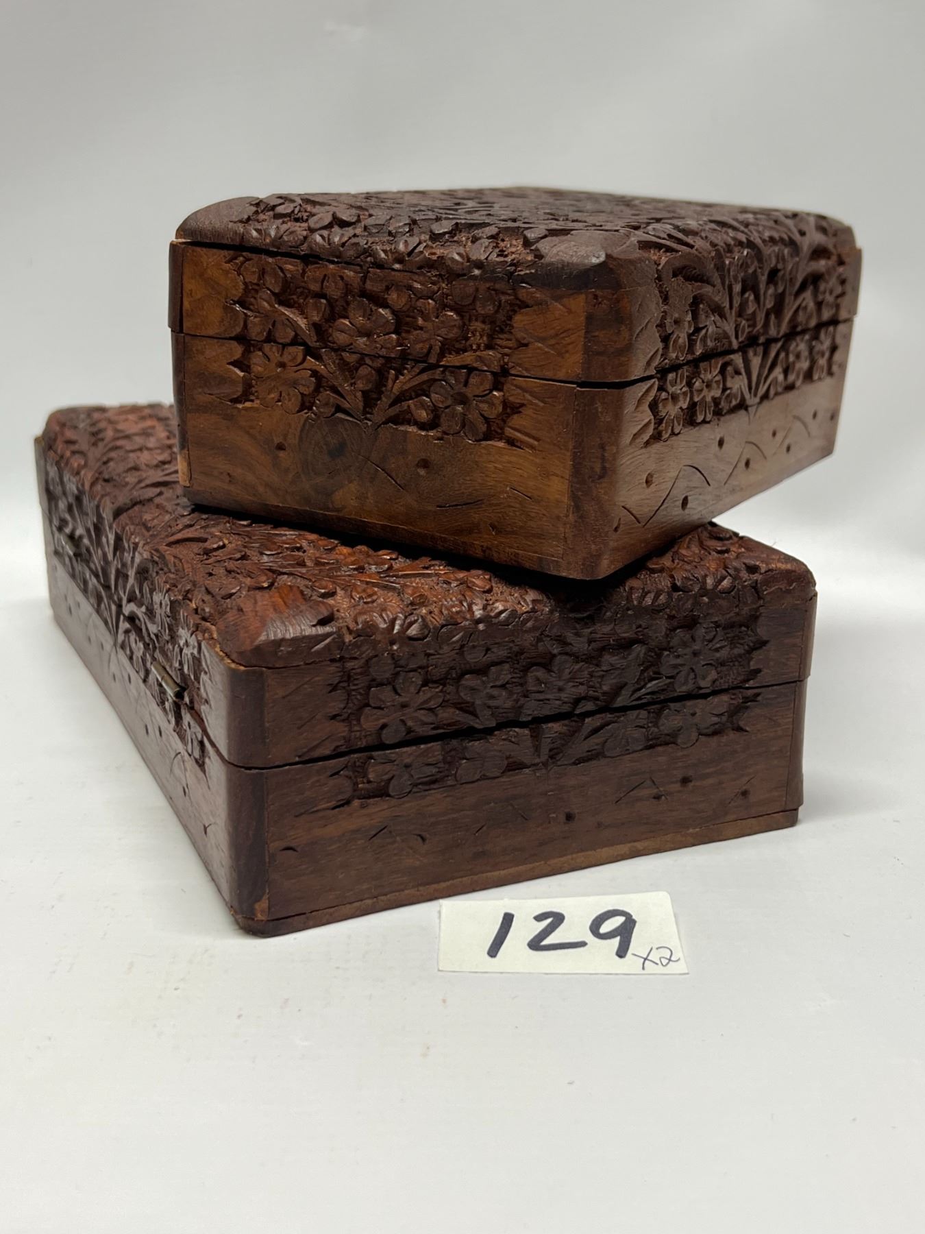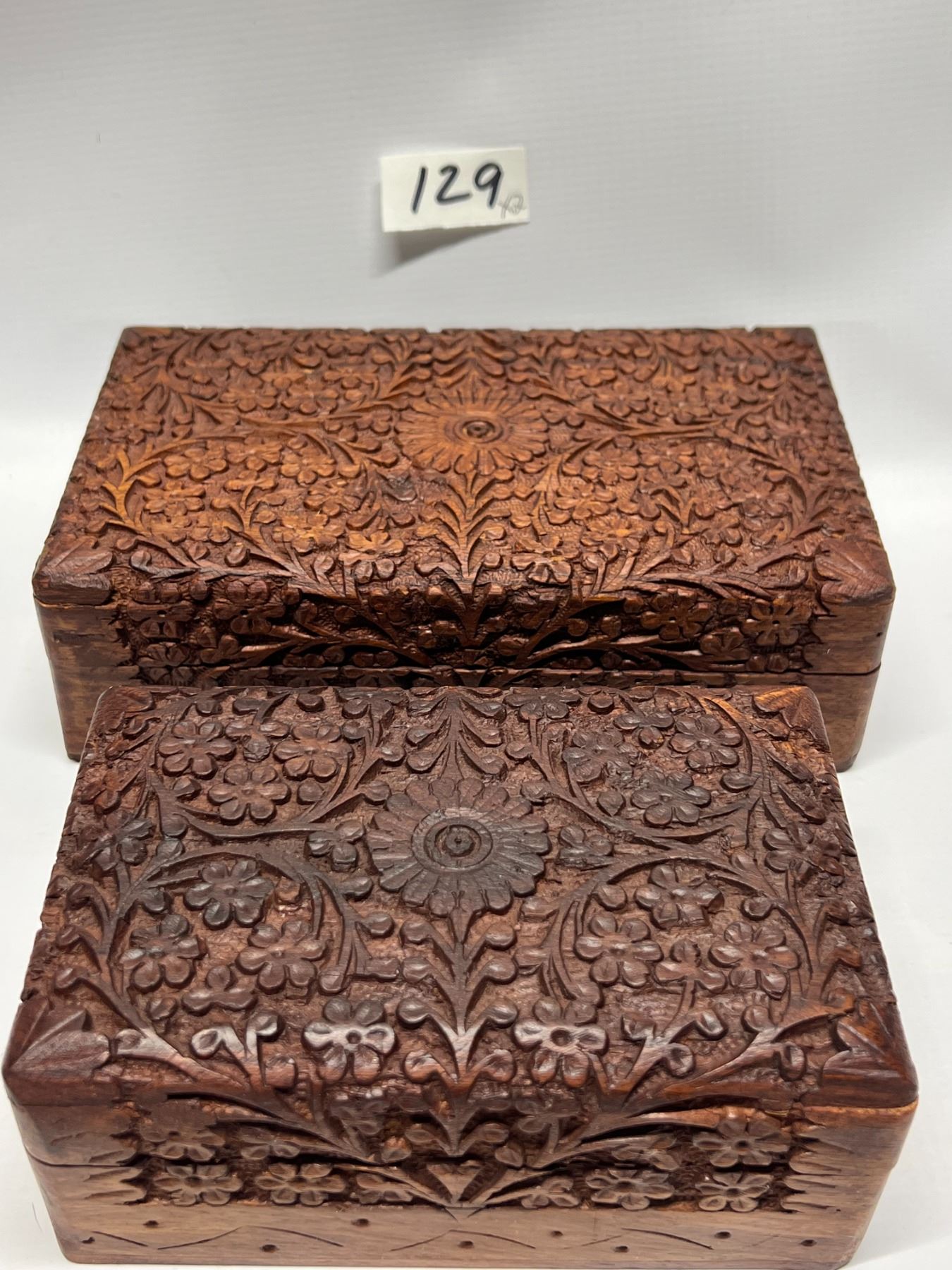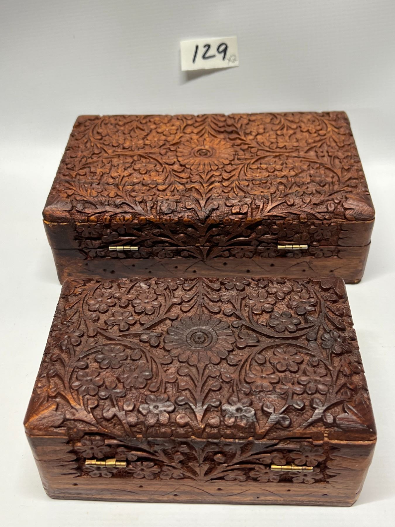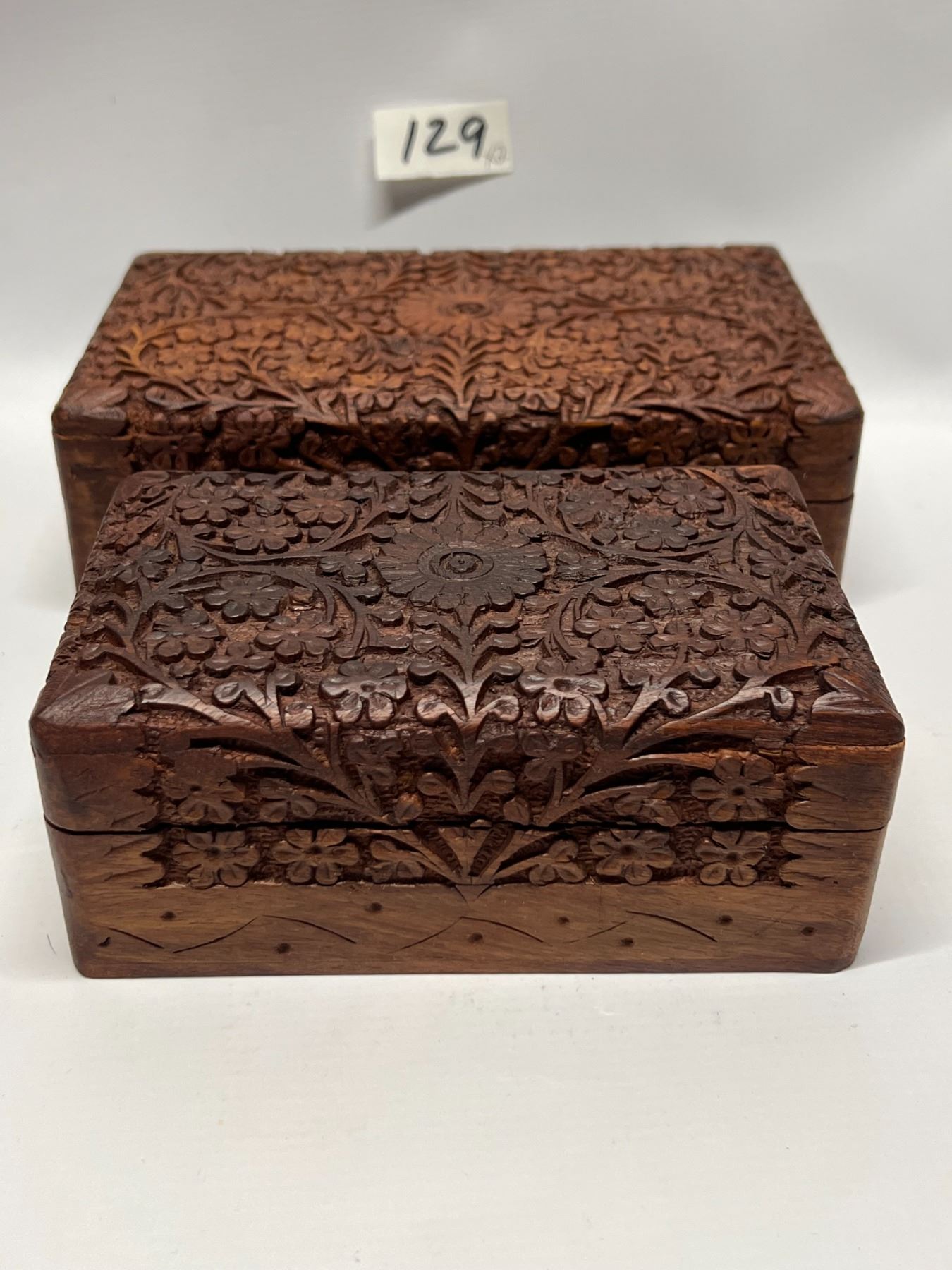 2 Carved Wood Very Detailed Jewelry Storage Boxes Lrg one appr: 8x5x2.25"