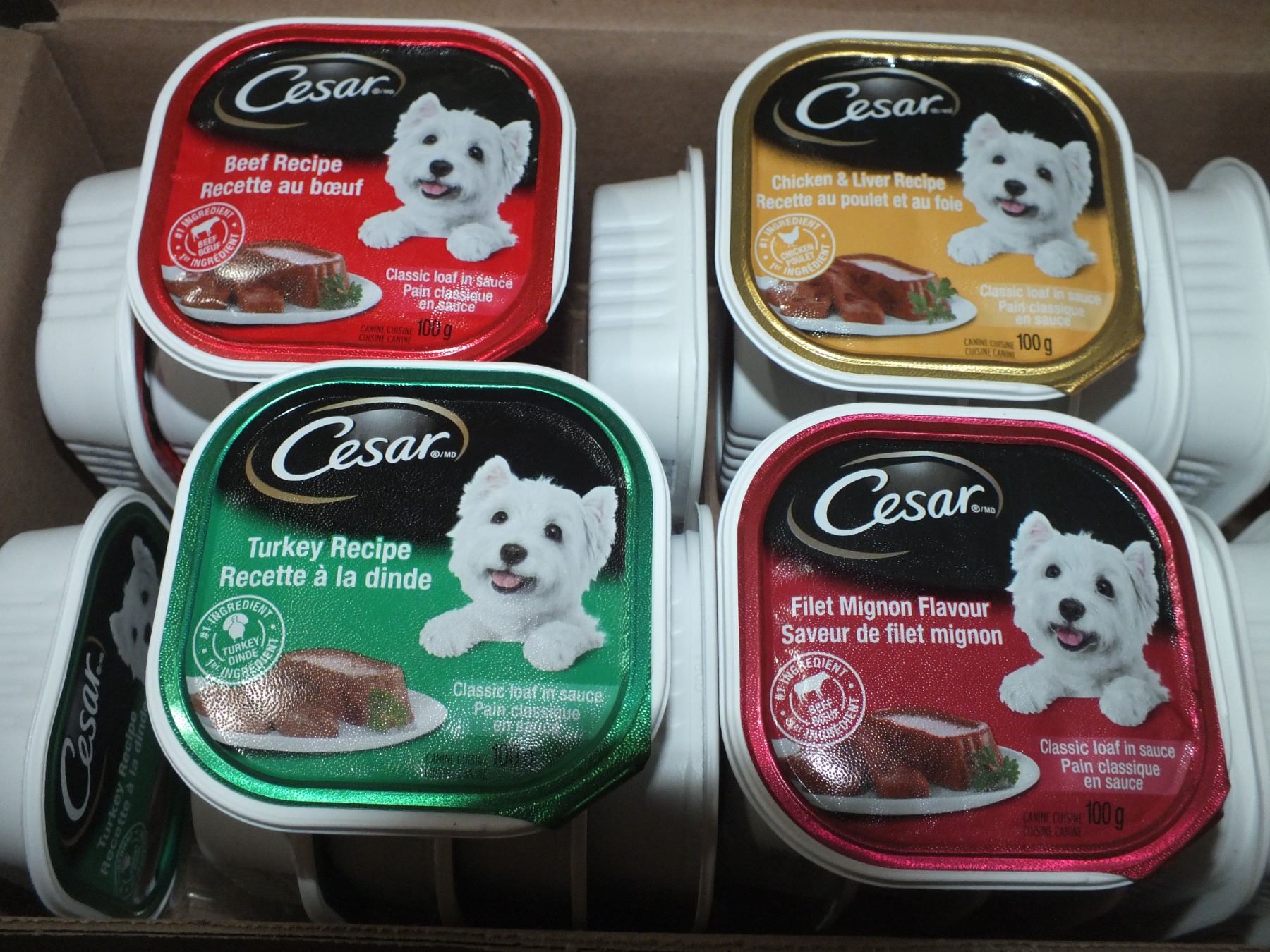 2 Case's Of Cesar Dog Food, you get 6 filet mignon, 6 turkey, 6 beef and 6 chicken and liver flavors per case, 48 tins altogether...New