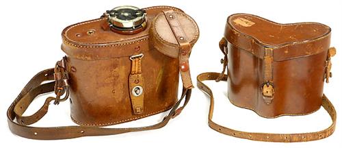 2 Cases for Military Prism Binoculars 1) Case with compass by Zeiss, 1920ies. - And: 2) Case for infantryman's binoculars, c. 1900.<Br>