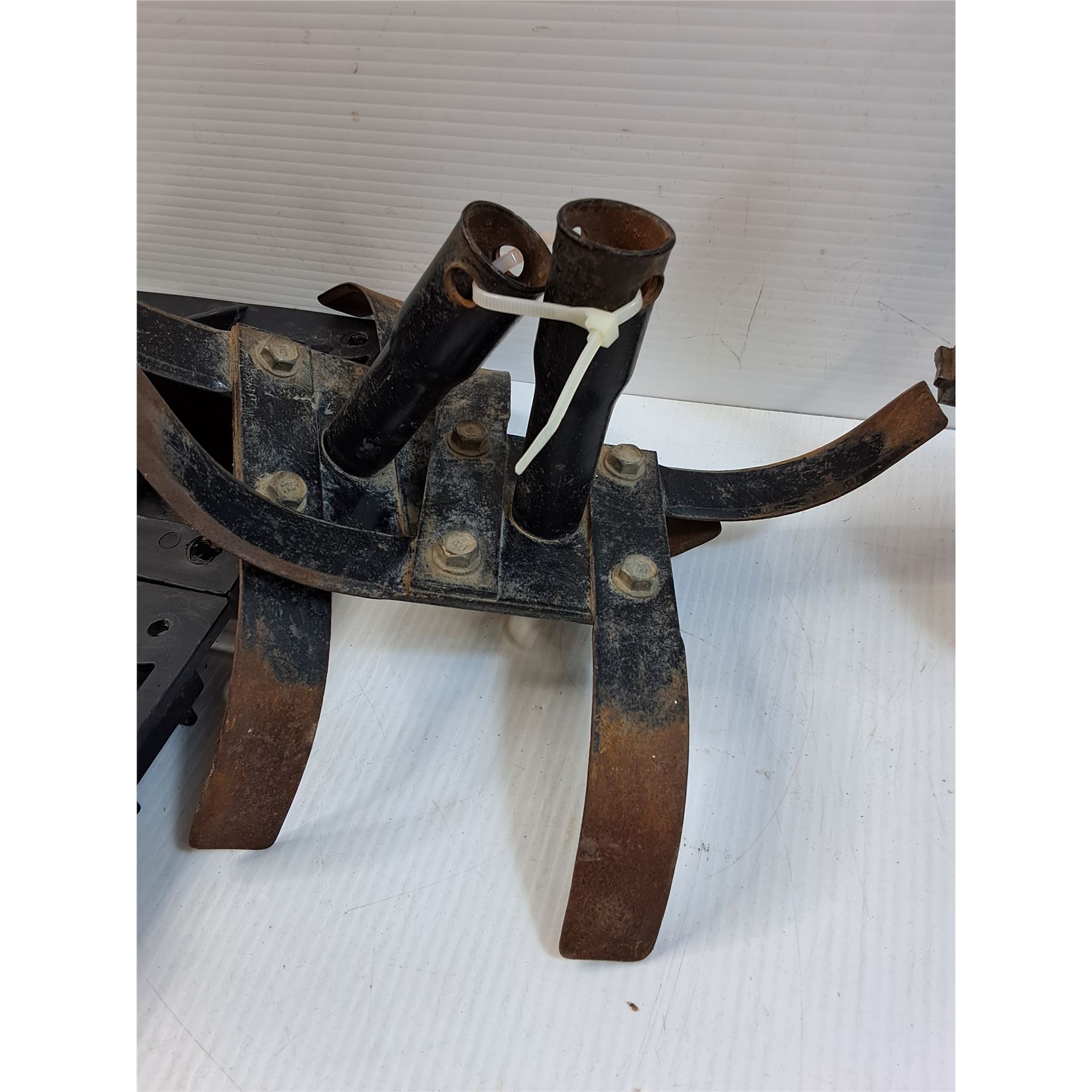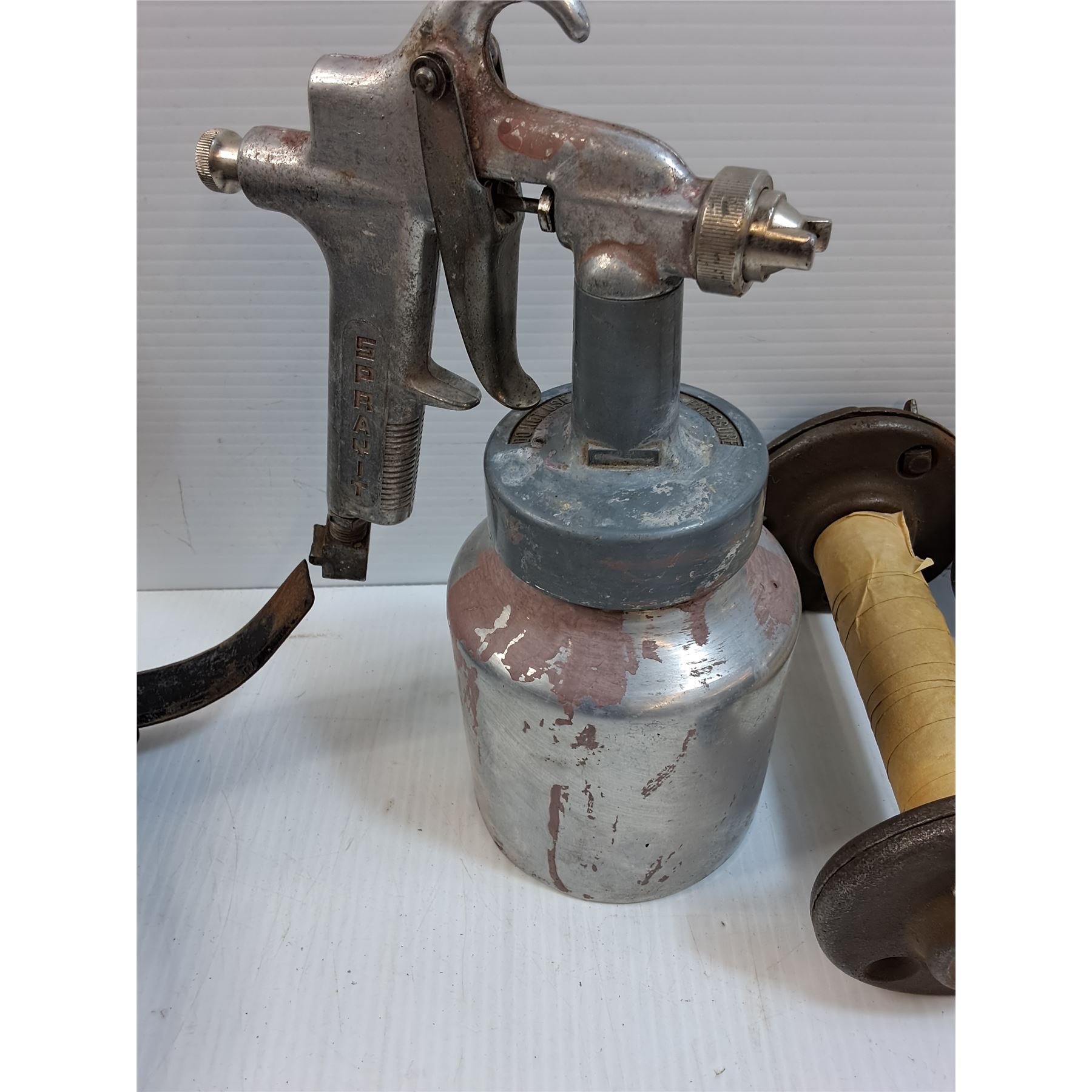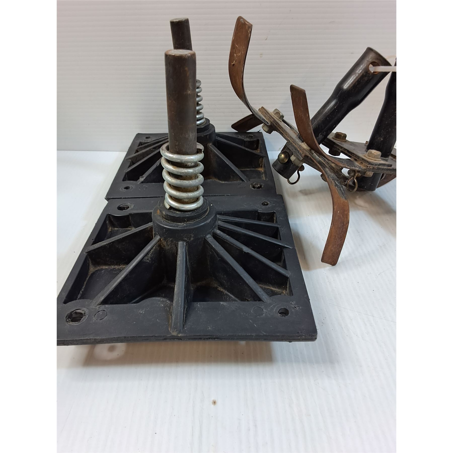 (2) Cast Iron Base Feet, Rototiller Tines, Thomas Gravity Feed Paint Gun, (2) Base Feet