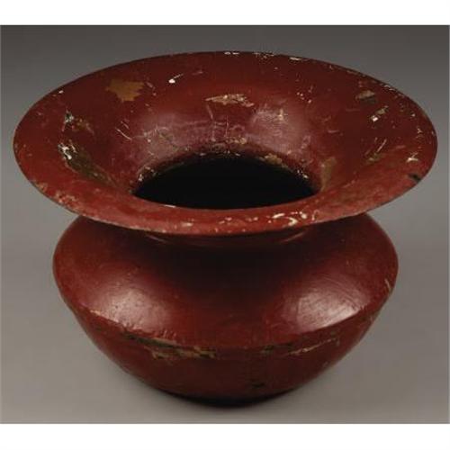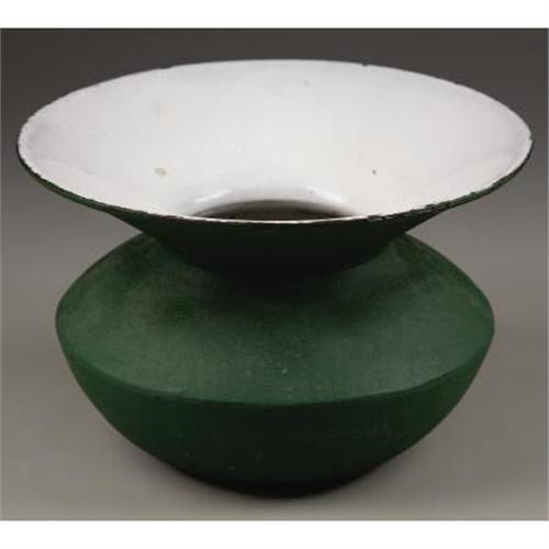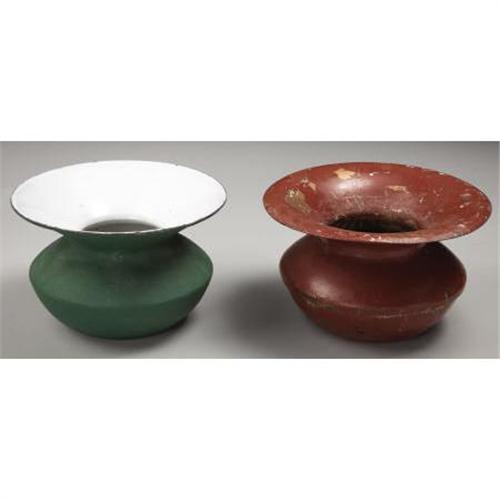 <B>TWO CAST IRON SPITTONS</B></I> - Floor models, one white porcelain with green over print on outside, other well used with red re-print.<BR><BR><b>Shipping:</b> Miscellaneous Collectibles, Larg (<a target="_blank" href="http://www.heritageauctions.com/common/shipping.php">view shipping information</a>)