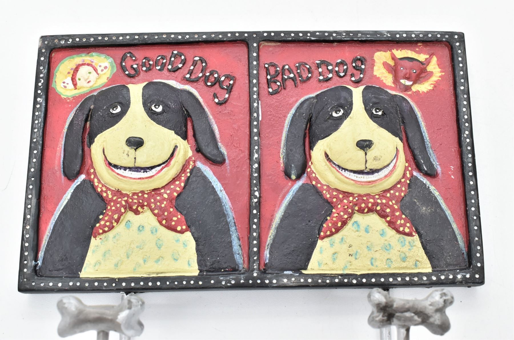 2 Cast Resin ''Good Dog Bad Dog'' Hooks, measure 6.75'' x 6'' each