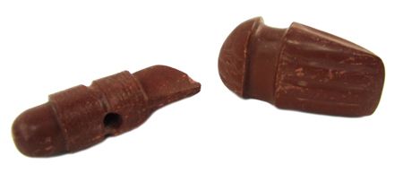 Ca. 1970s-1980s, Two hand carved catlinite stone club heads, one three-quarter groove with a fluted bottom and sides, the other with a double textured band and a slanted end. Both in good condition, small chip on one and some light scratches. 2-1/2" x 4-1/2" & 1-1/2" x 4-1/2"