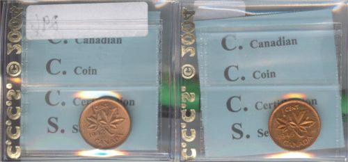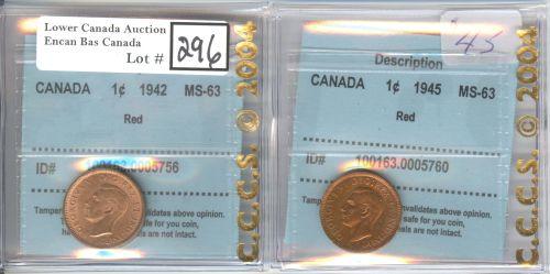 1942 CCCS certified MS-63 Red & 1945 CCCS certified MS-63 Red. Pair of full red cents.