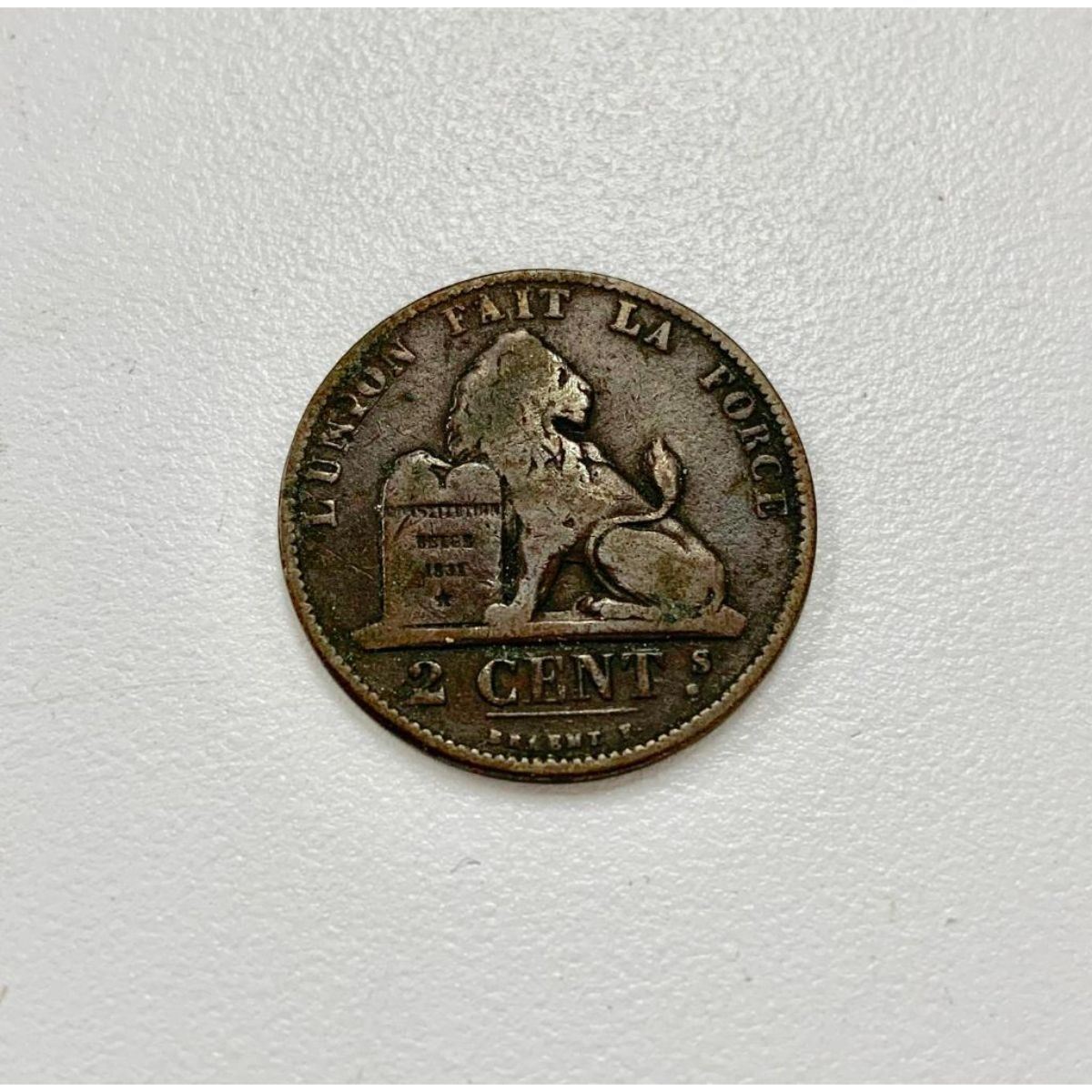 Obverse The royal monogram is surrounded with lettering in French. Date below. Lettering: LEOPOLD II ROI DES BELGES * 1871 Translation: LEOPOLD II KING OF THE BELGIANS 1902 Engraver: Joseph-Pierre Braemt Reverse A lion, symbol of Belgium, with a paw over the Belgian Constitution dating 1831. Around is the Belgian motto in French. Value and designer below. Lettering: L'UNION FAIT LA FORCE CONSTITUTION BELGE 1871 * 2 CENTs. BRAEMT.F Translation: UNITY MAKES STRENGTH BELGIAN CONSTITUTION 1831* 2 CENTIMES BRAEMT (F = Fecit = Made by) Engraver: Joseph-Pierre Braemt Edge Reeded Specifications Country: Belgium King: Philippe (2013-date) Type: Standard circulation coin Years: 1869-1909 Value: 2 Centimes (0.02 BEF) Currency: Franc (1832-2001) Composition: Copper Weight: 4 g Diameter: 21.5 mm Thickness: 1.2 mm Shape: Round