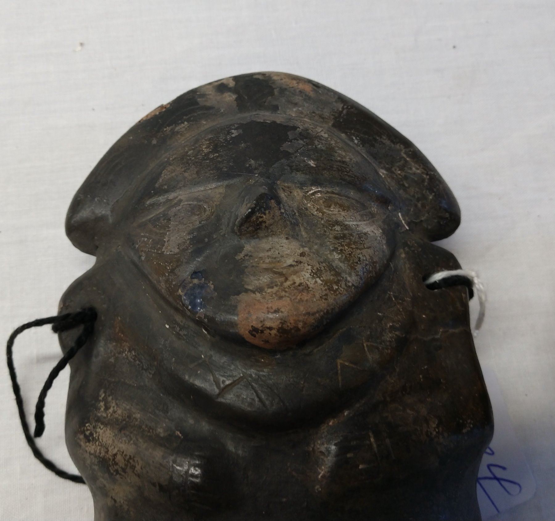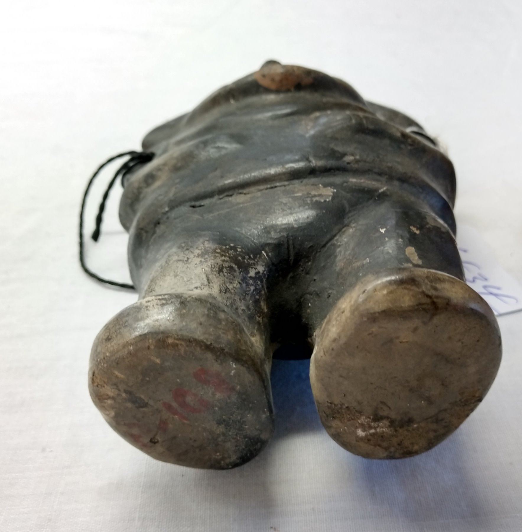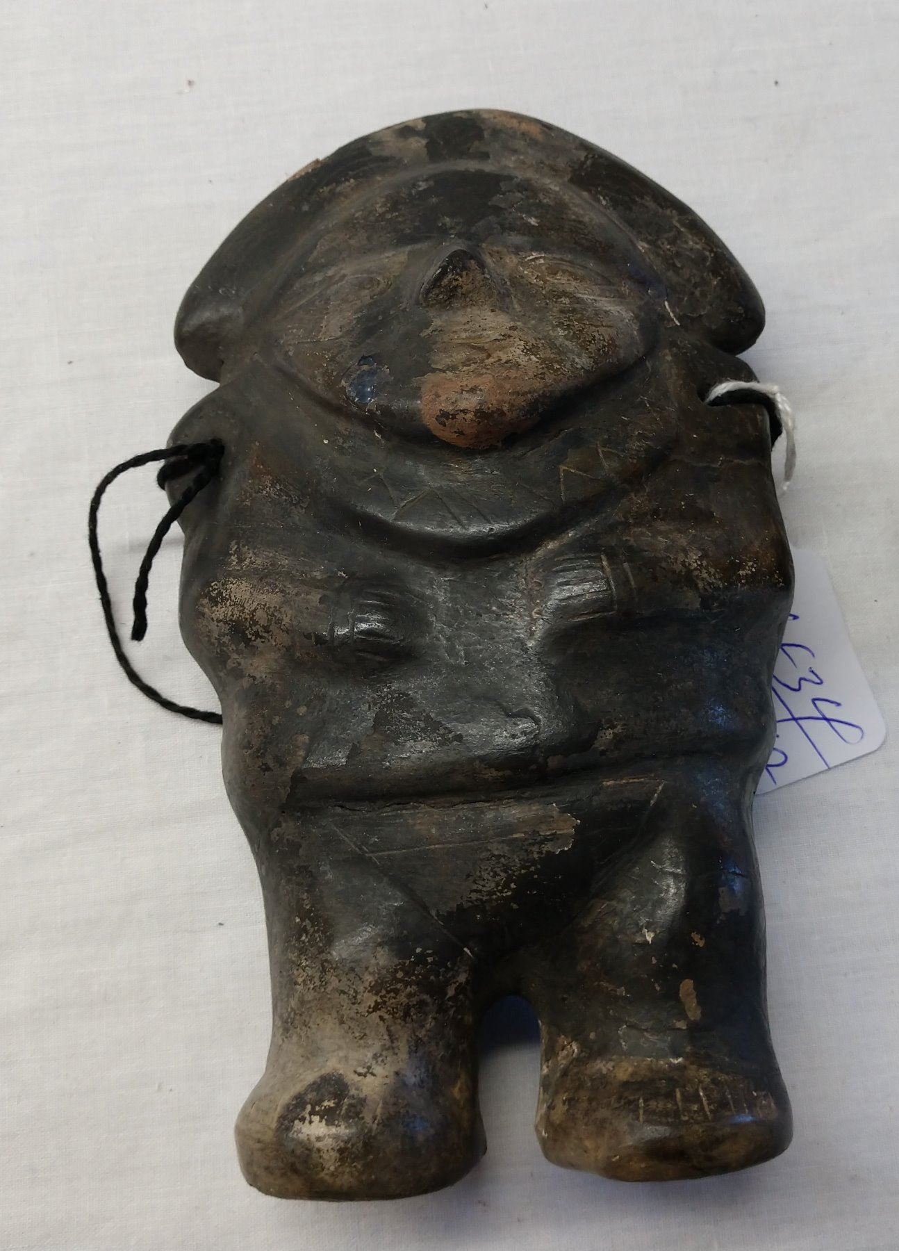 2 Central American Figures, pre-Columbian and later. Made of clay, the items measure 5" and 4". From Central America. Condition: Scuffs and dings, see images. Shipping: $20.00 w/insurance and signature.