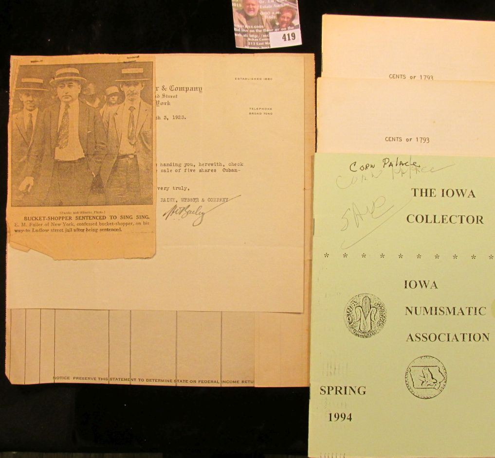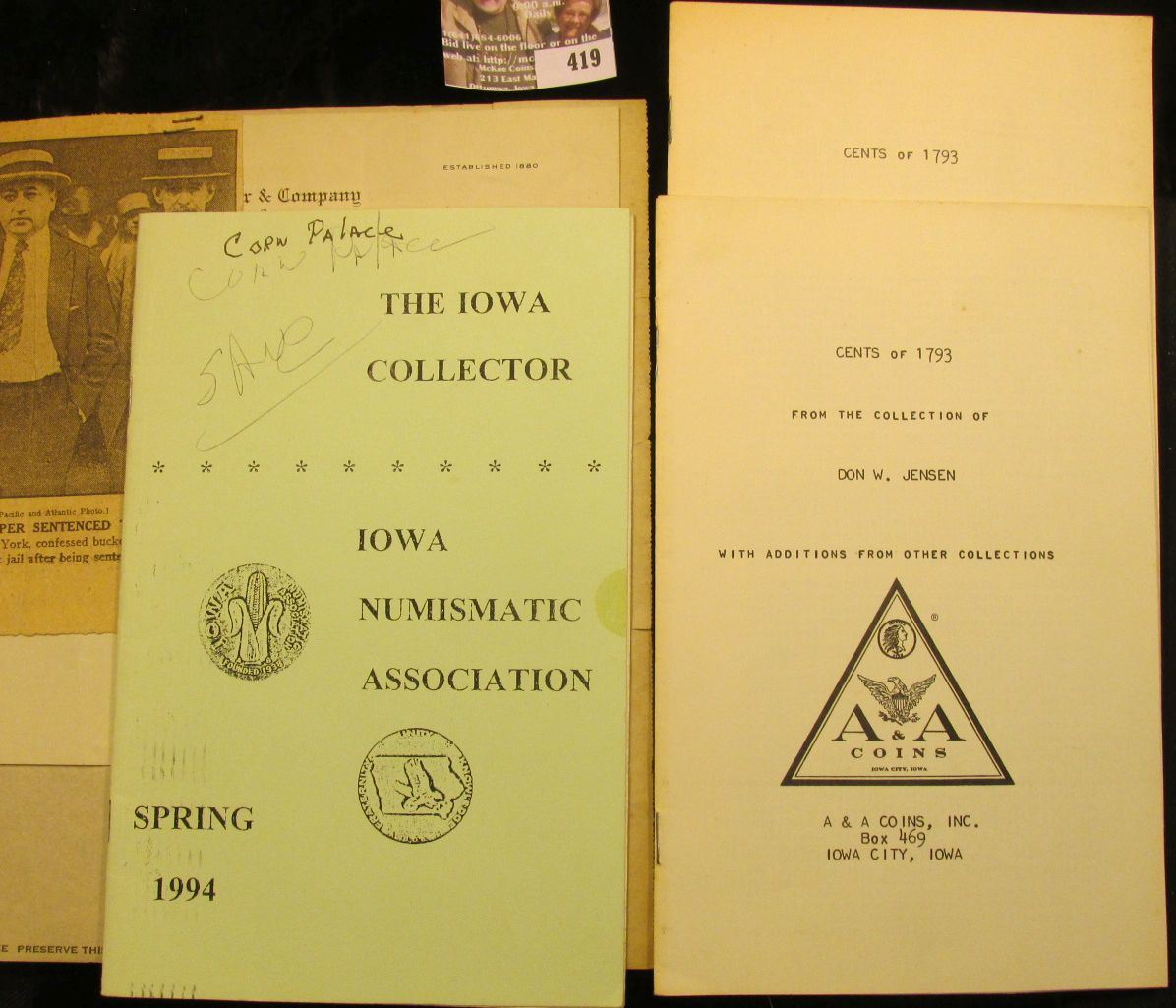 (2) "Cents of 1793 From The Collection of Don W. Jensen With Additions From Other Collections", this booklet was issued by Dean Oakes while he owned A & A Coins; booklet "The Iowa Collector Iowa Numismatic Association Spring 1994" (my Mother, Gail McKee,