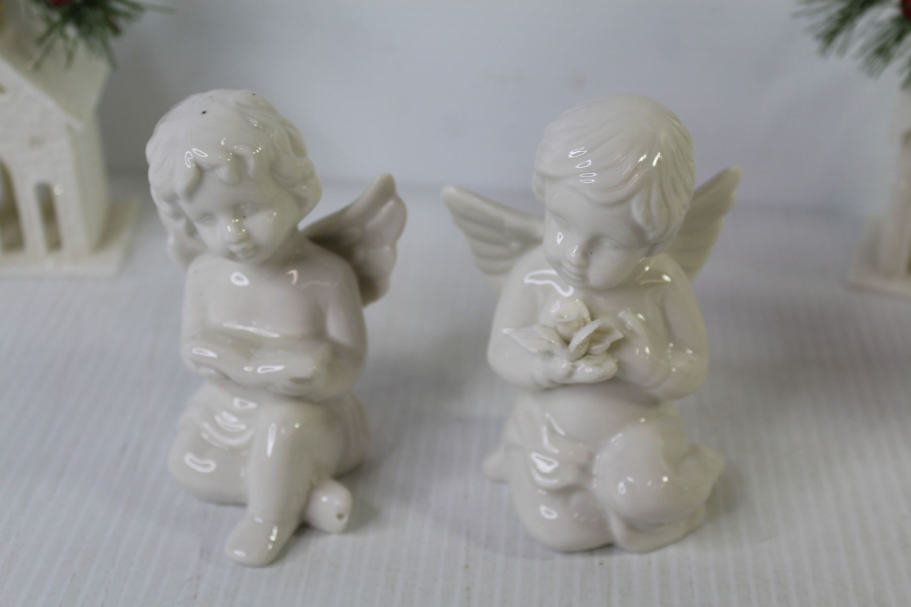 (2) Ceramic Cherubs - Plastic Angels & Churches