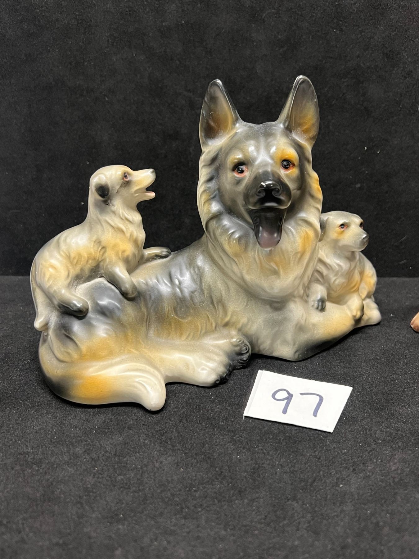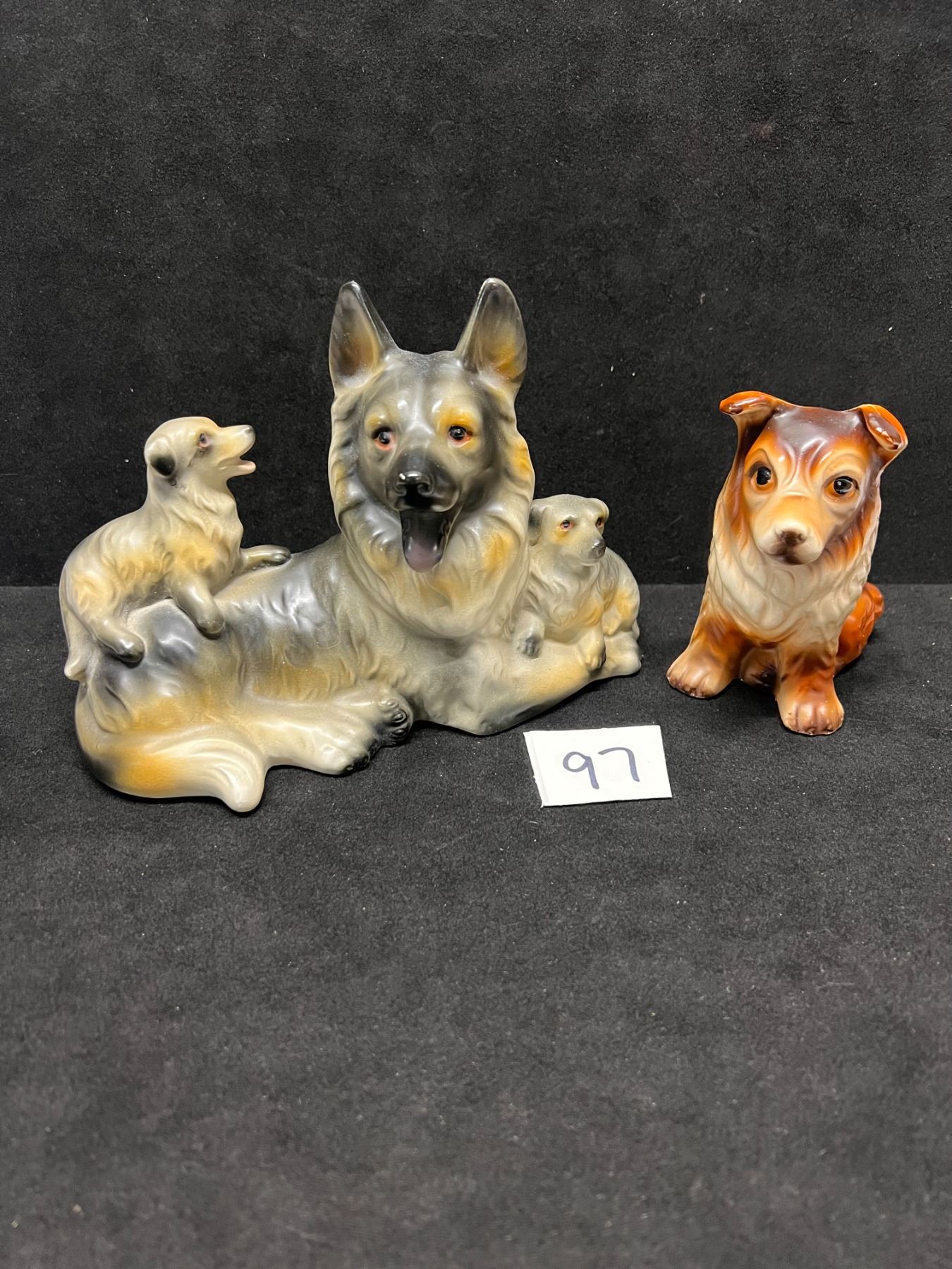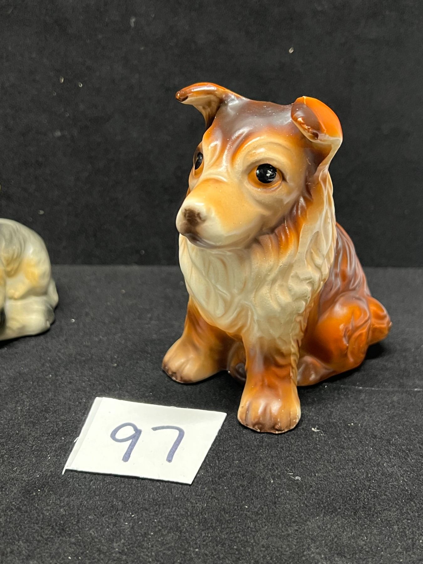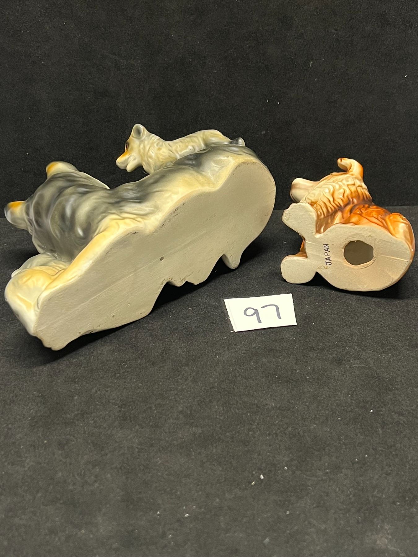 2 Ceramic Dog Figurines décor ornaments Japan Large Figure Appr: 5.5"T 7.75"W