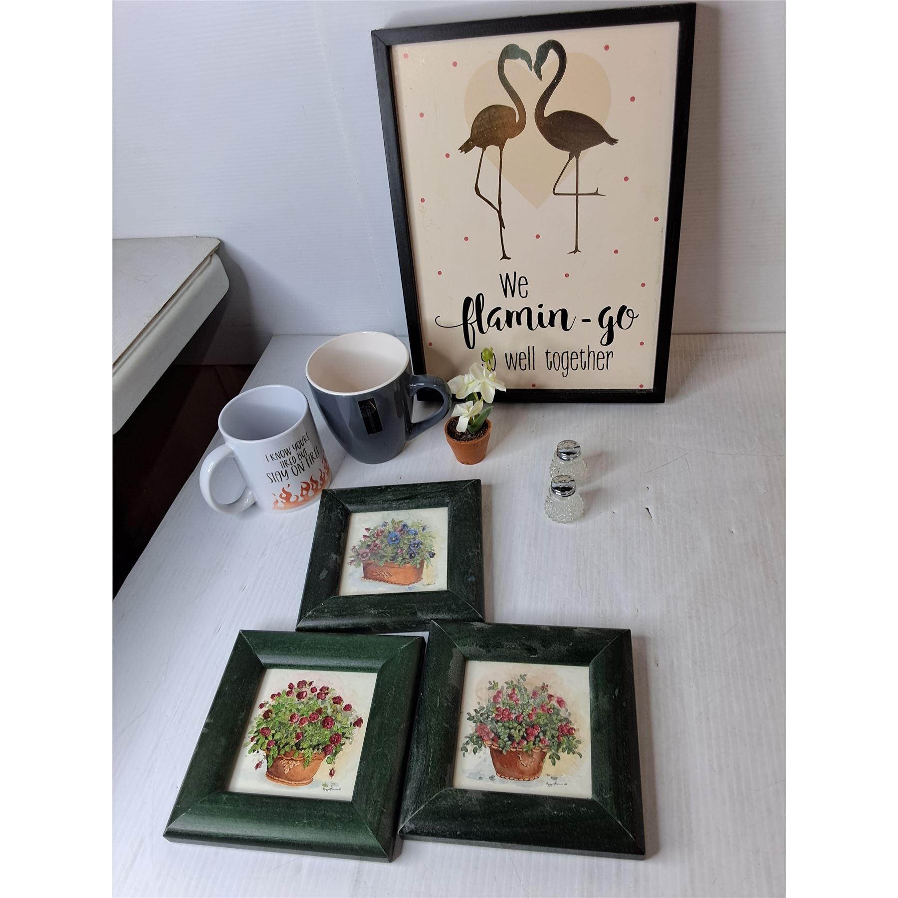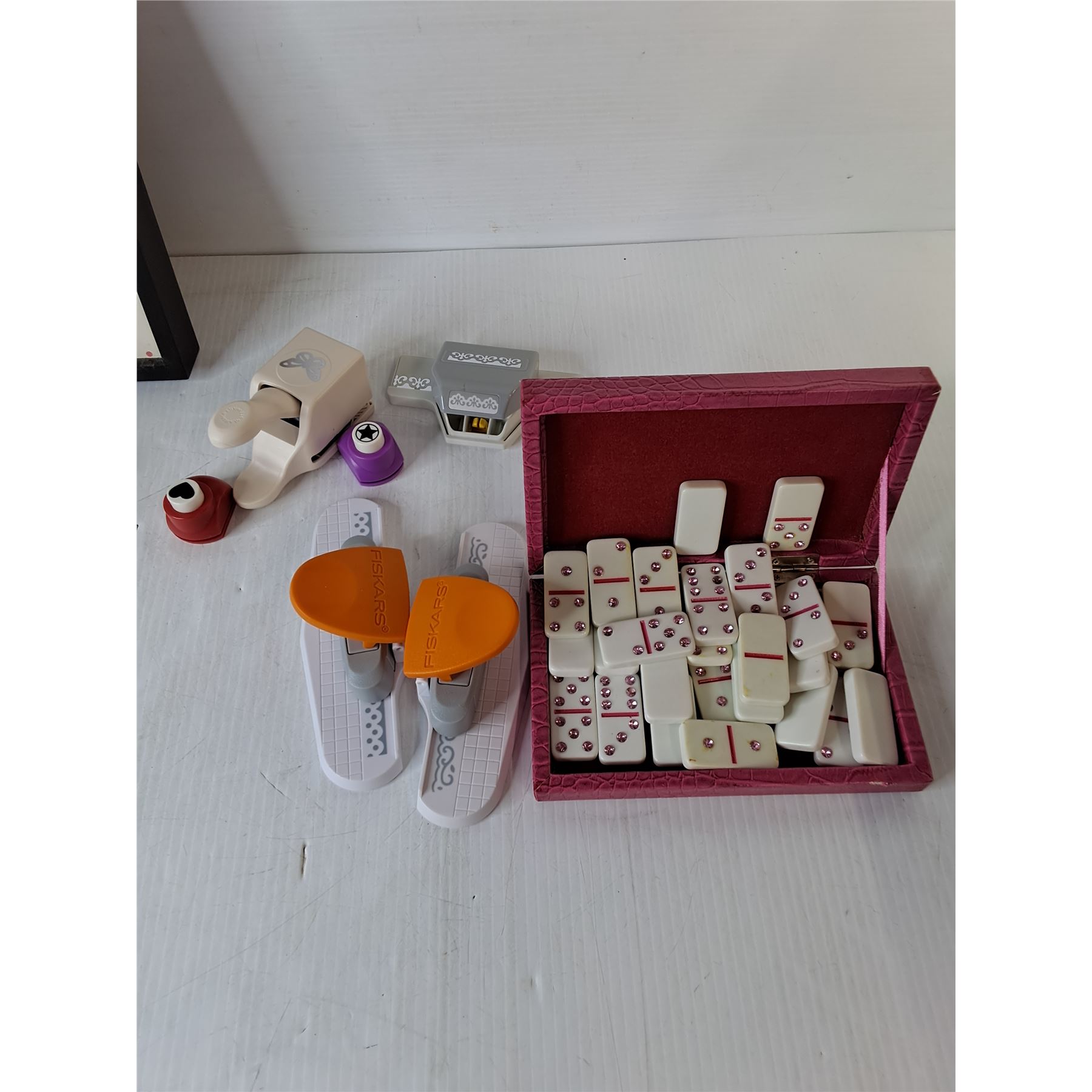 (2) Ceramic Mugs, Border Punches, Dominoes, Misc.