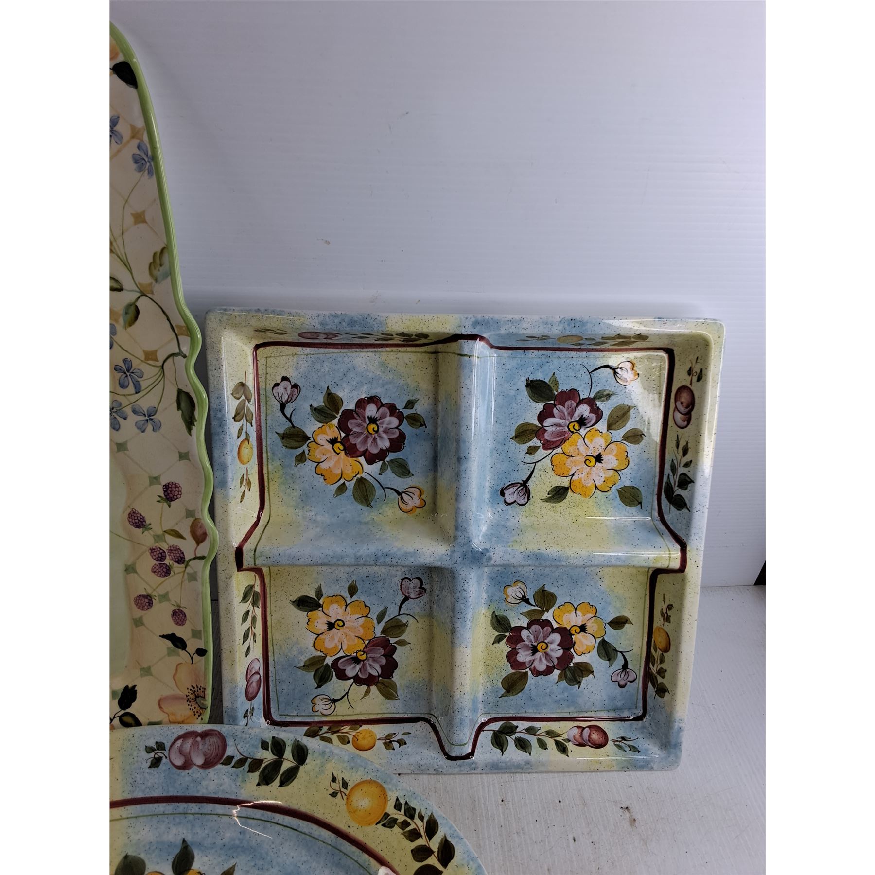 (2) Ceramic Platters, Ceramic Divided Square Dish 18" , 22" , 15", Cannot Ship