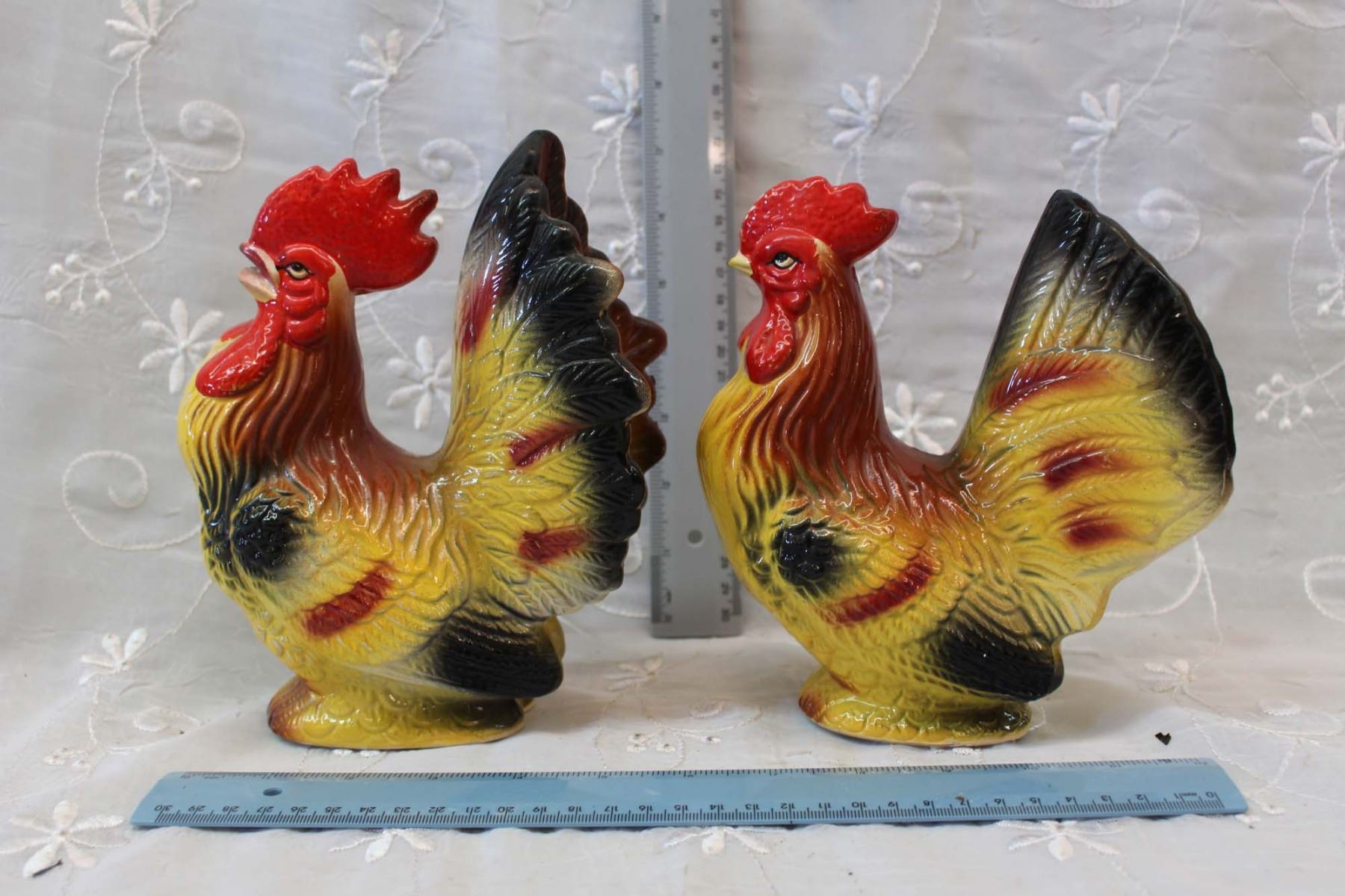 2 Ceramic Rooster Decorations