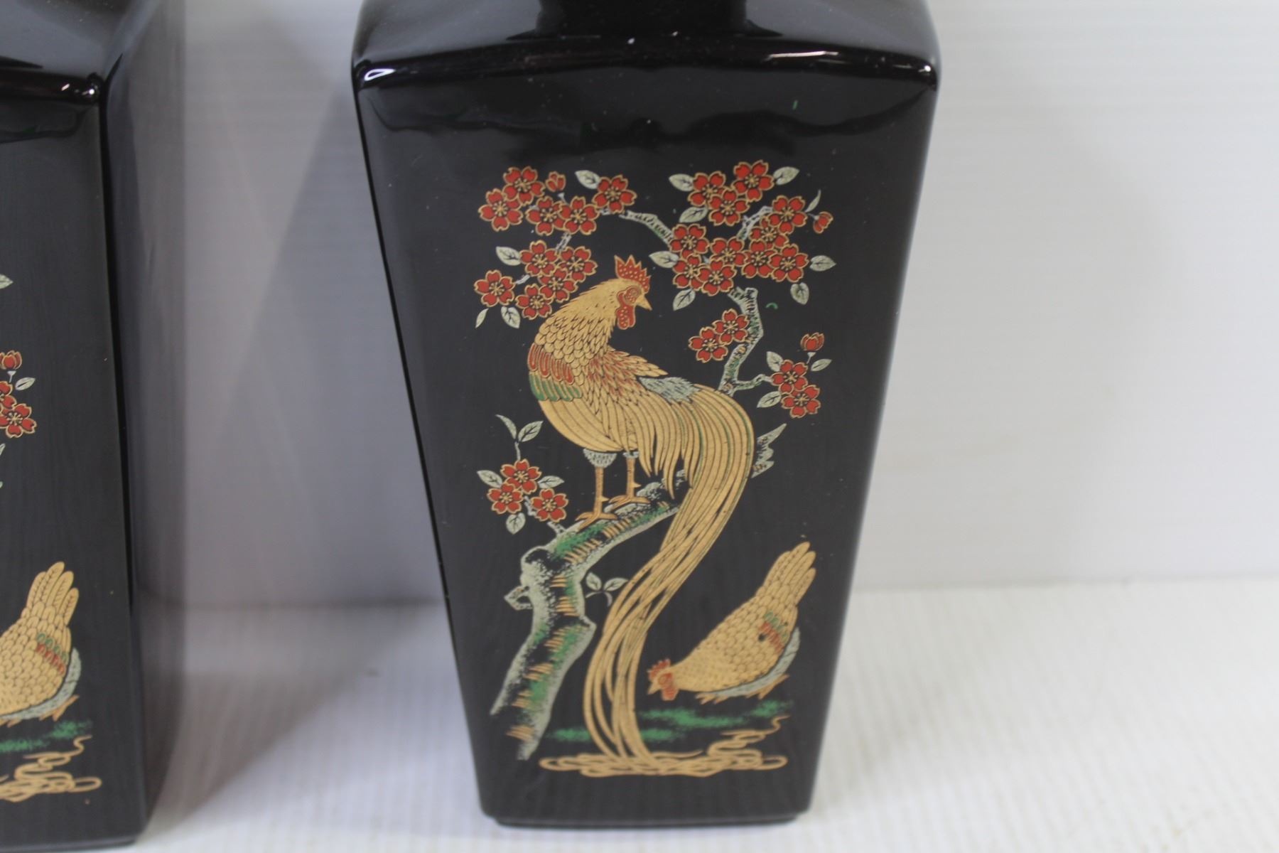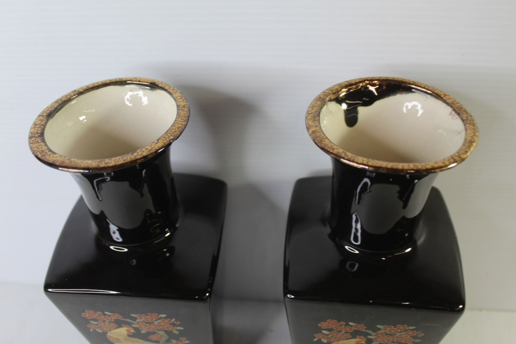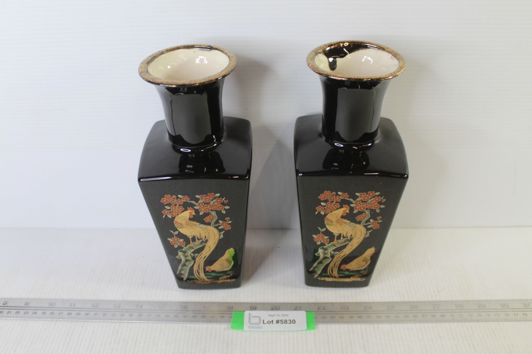 (2) Ceramic Vases - Asian Themed (10.5" x 4")