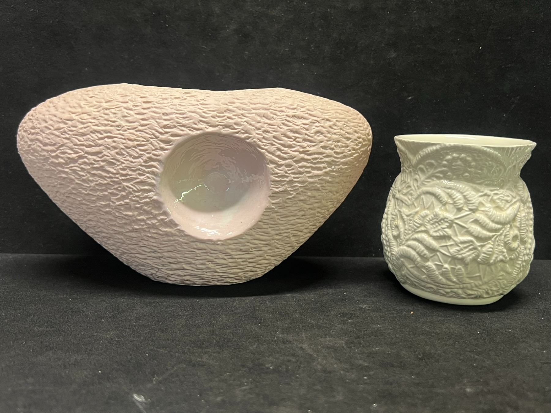 2 Ceramic Vases (Larger one approx: 8"W 4.5"T))