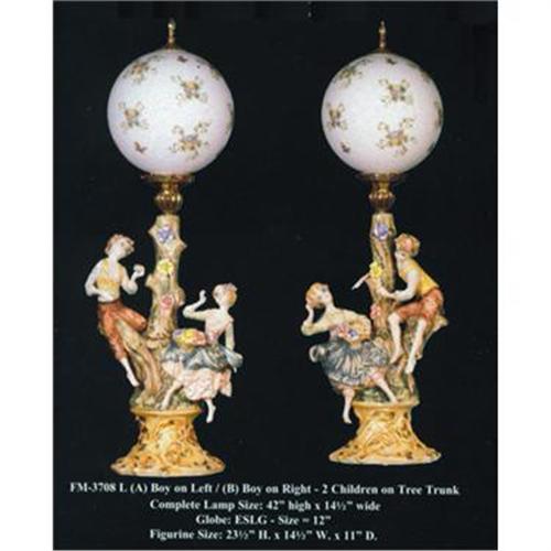 Capodimonte Porcelain "2 Children on Tree" lamp with Globe. This is for 1 lamp - please specific which one you want. Satisfaction Guaranteed All our capodimonte pieces are 100% authentic, made with the best craftmanship in Italy. Capodimonte is more than a century Italian style of the finest porcelain once reserved for kings and queens. The style became popular when the royal family in Italy fell in love with the beauty of Capodimonte arts. The selection you see is made by artisans, according to the same tradition dating back to the 18th Century.<BR>Free Shipping in the continental US