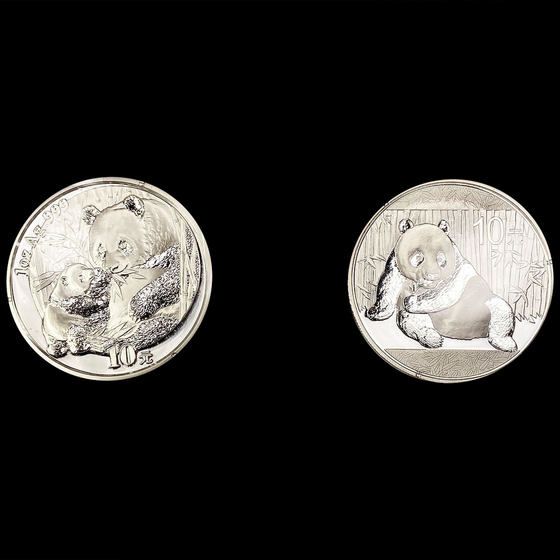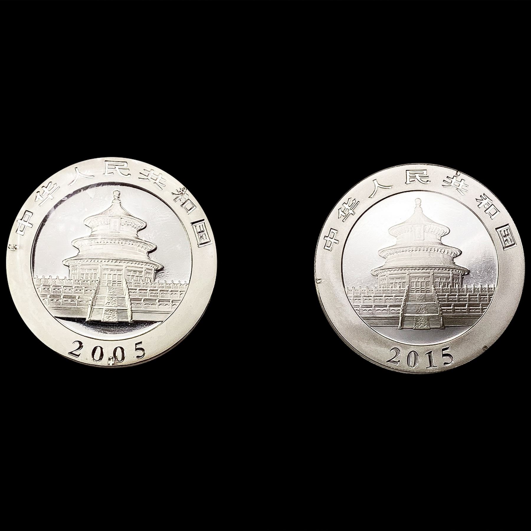 (2) China 1oz Silver 10 Yuan (2005, 2015) GEM PRO