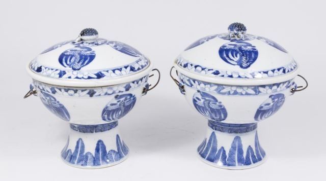 Approx. 9" H x 7 3/4" D. Property from a Manhattan townhouse. One broken with big chip and repaired.