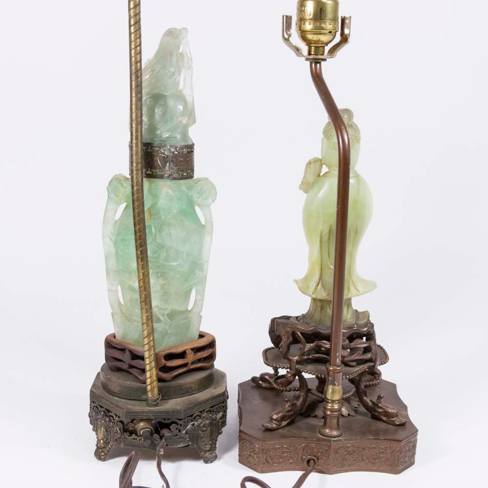 1 Guanyin, 1 covered jar. Larger approx. 10" H.