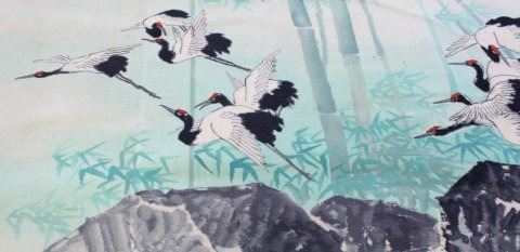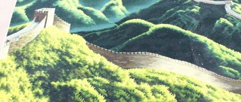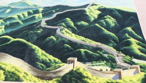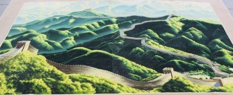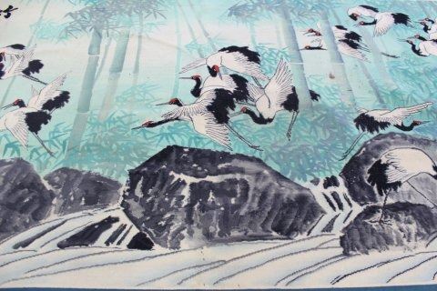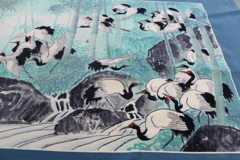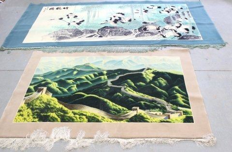 One with flying cranes, approx. 6 1/4' x 13'10"; and one with Great Wall of China.