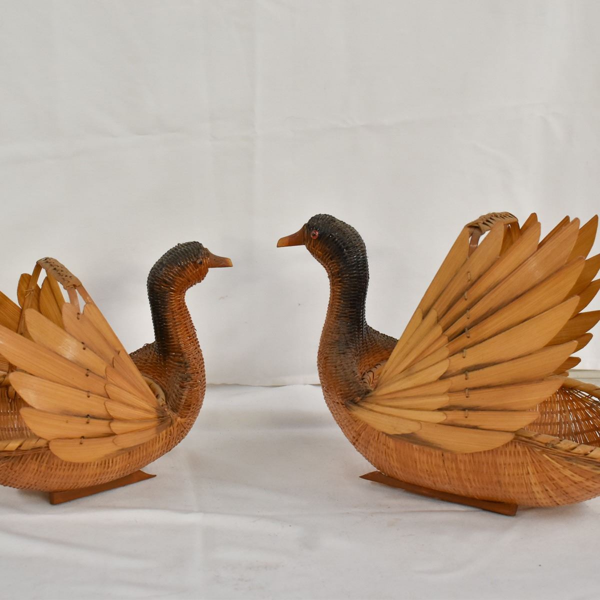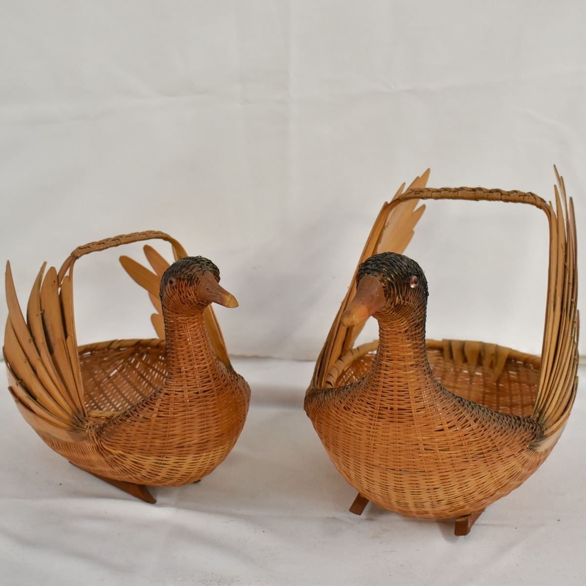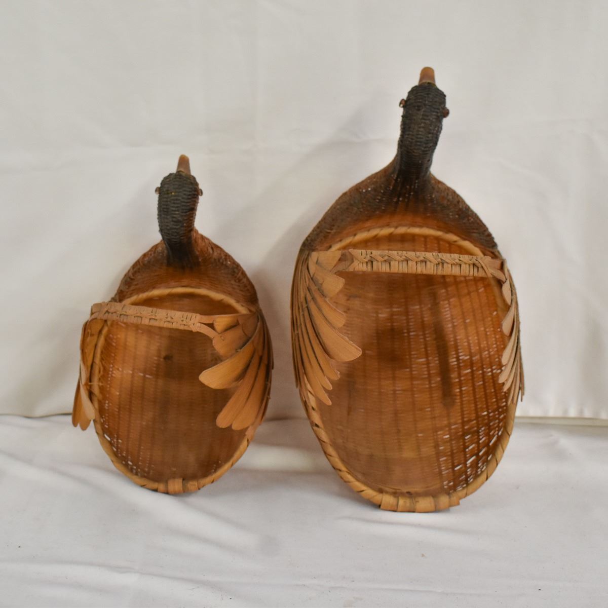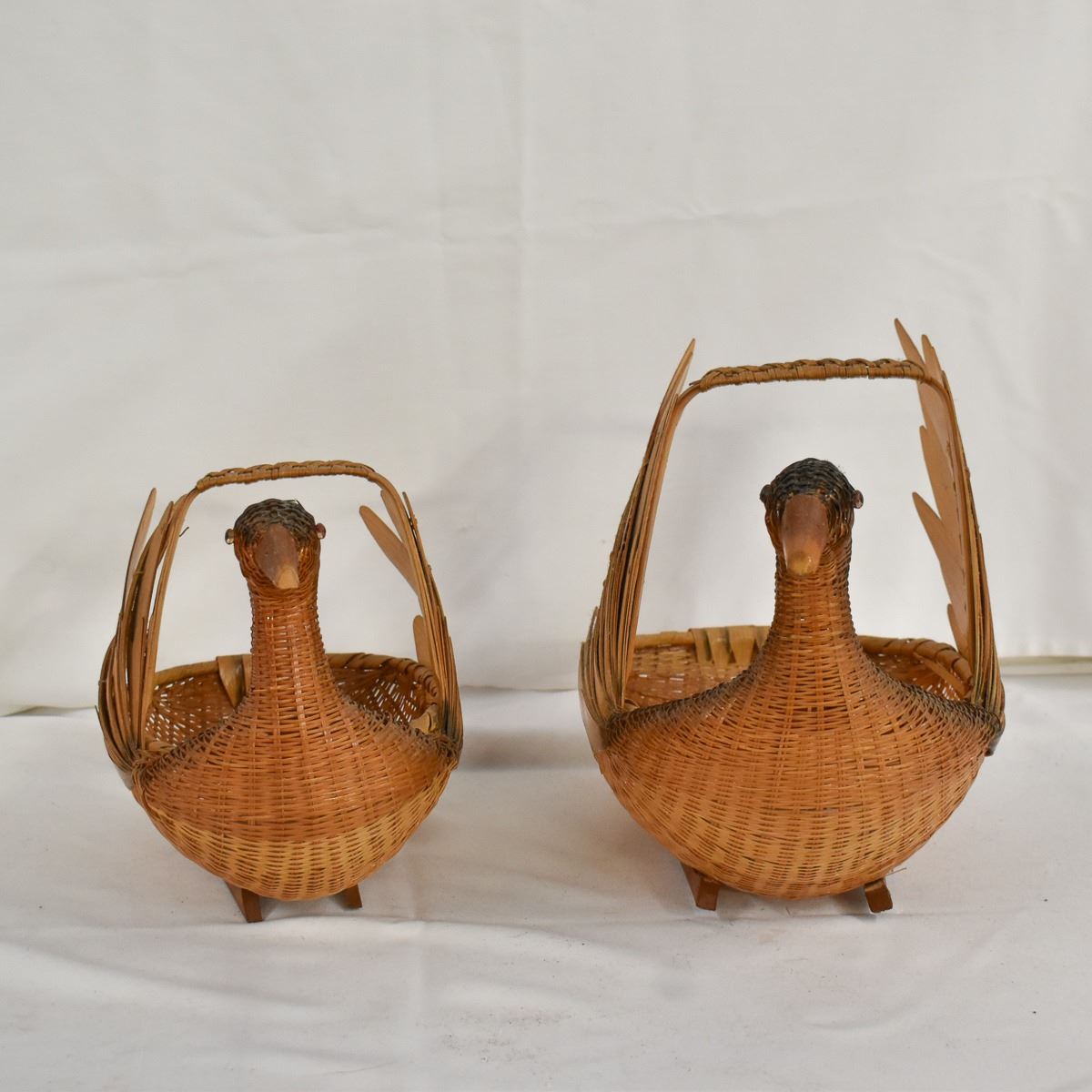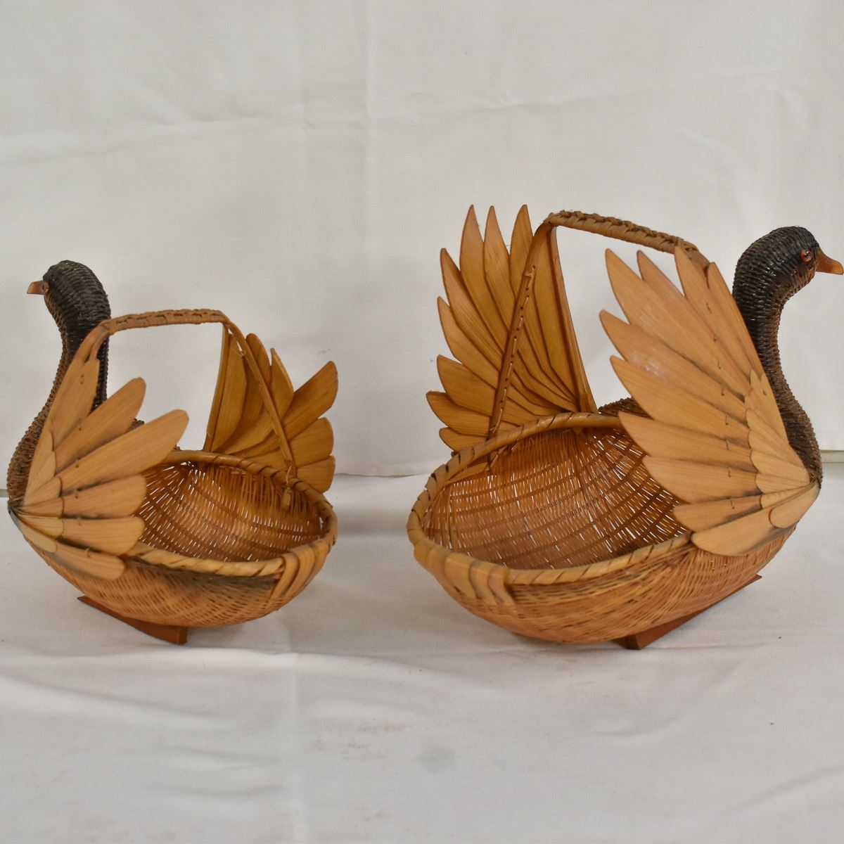 2 Chinese Wicker Swan Baskets, largest measures 7'' x 10'' x 13''