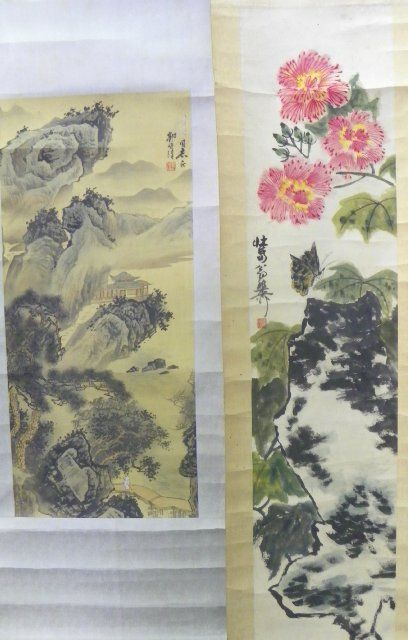 "Pink Cherry Blossoms" & "Water & Mountainside". Approx. 25" L & 36" L. Please read our terms of sale.