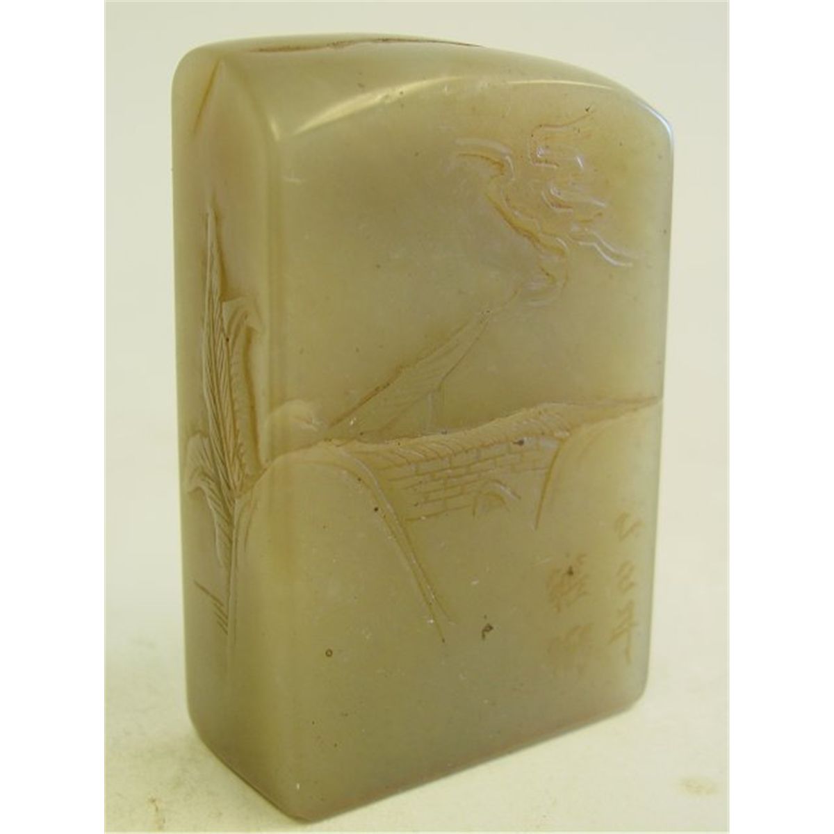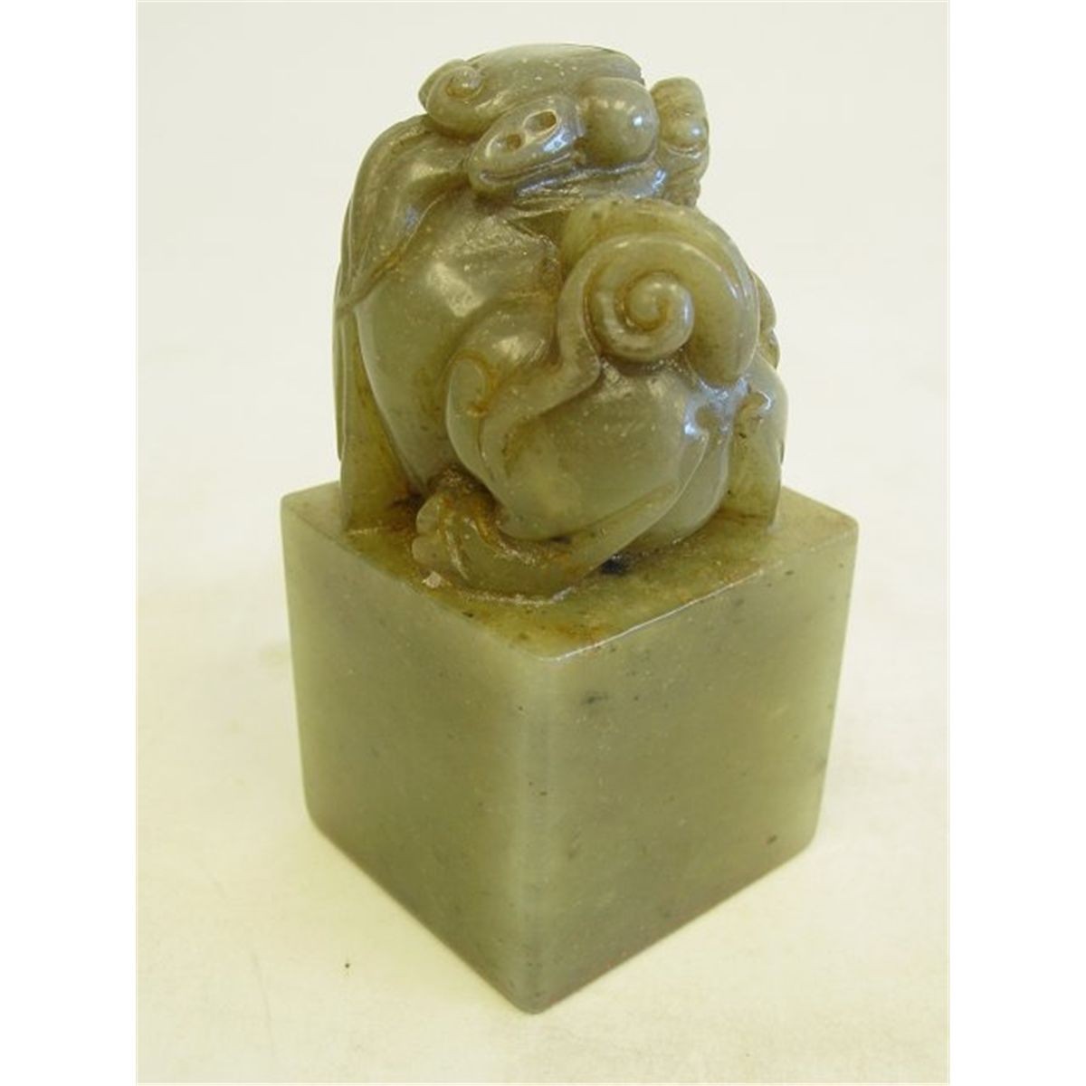1- Celadon seal, approx. 4"x 2". 1- Soapstone seal, approx. 3" x 2". Please read our terms of sale.