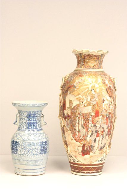1- Satsuma, approx. 23" H. 1- Blue & white, approx. 13" H. Please read our terms of sale.