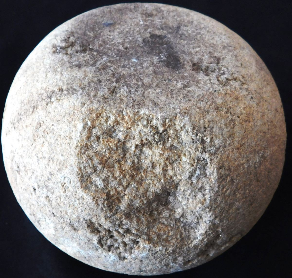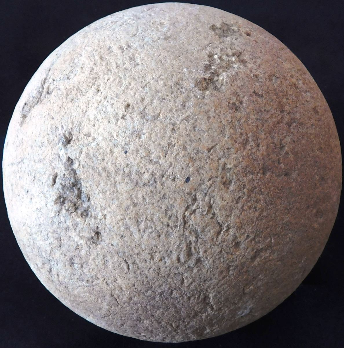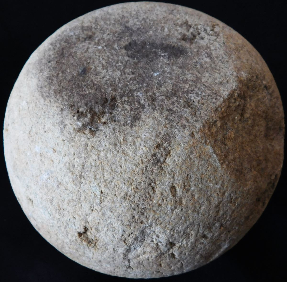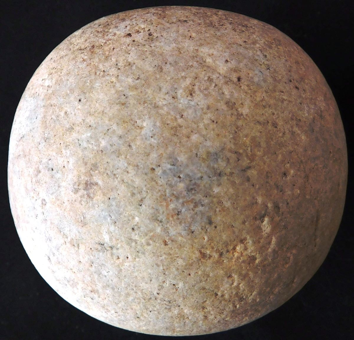 2 Chumash Gameballs, pre-historic items. Made of quartzite, items measure 3.5" and 5.5". From Santa Barbara County, Calif. Balls found together in the 1960s. Both stones have a flat bottom. Found on a campsite near Goleta, CA. Condition: Larger gameball has chip on bottom, see images. Shipping: $32.50.